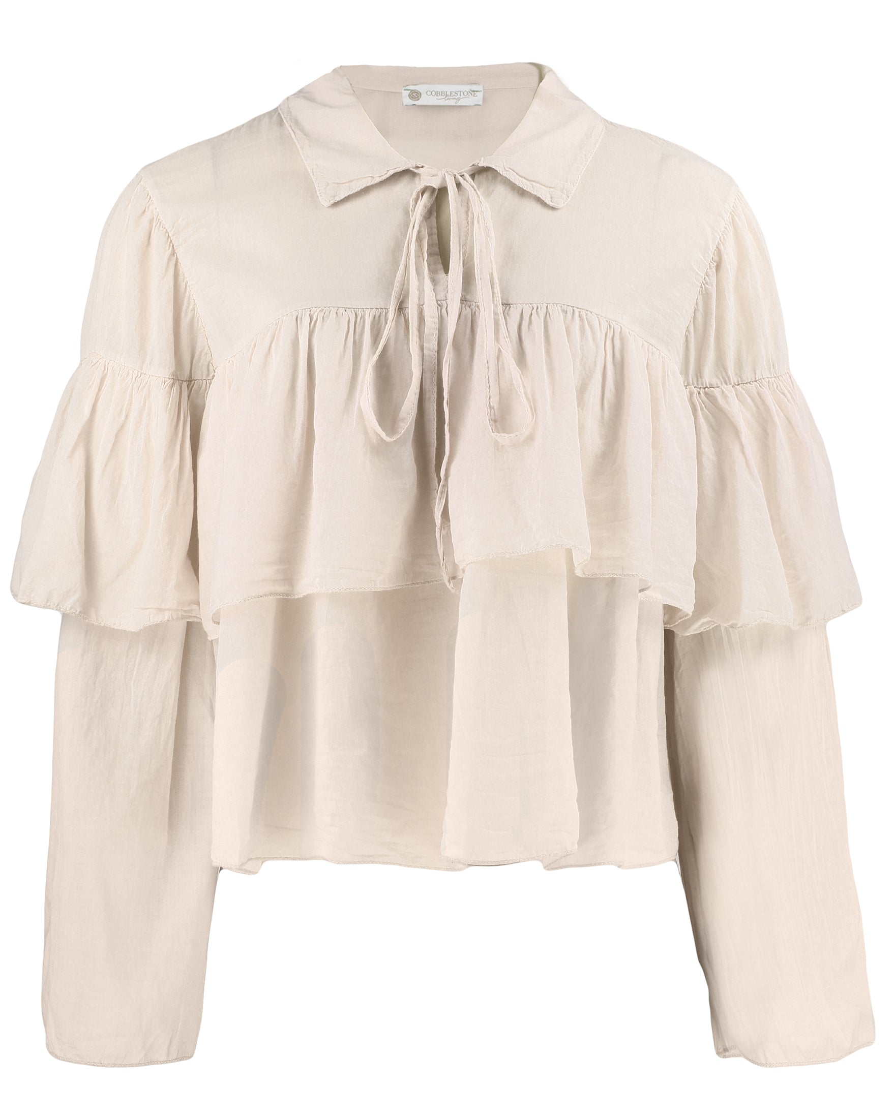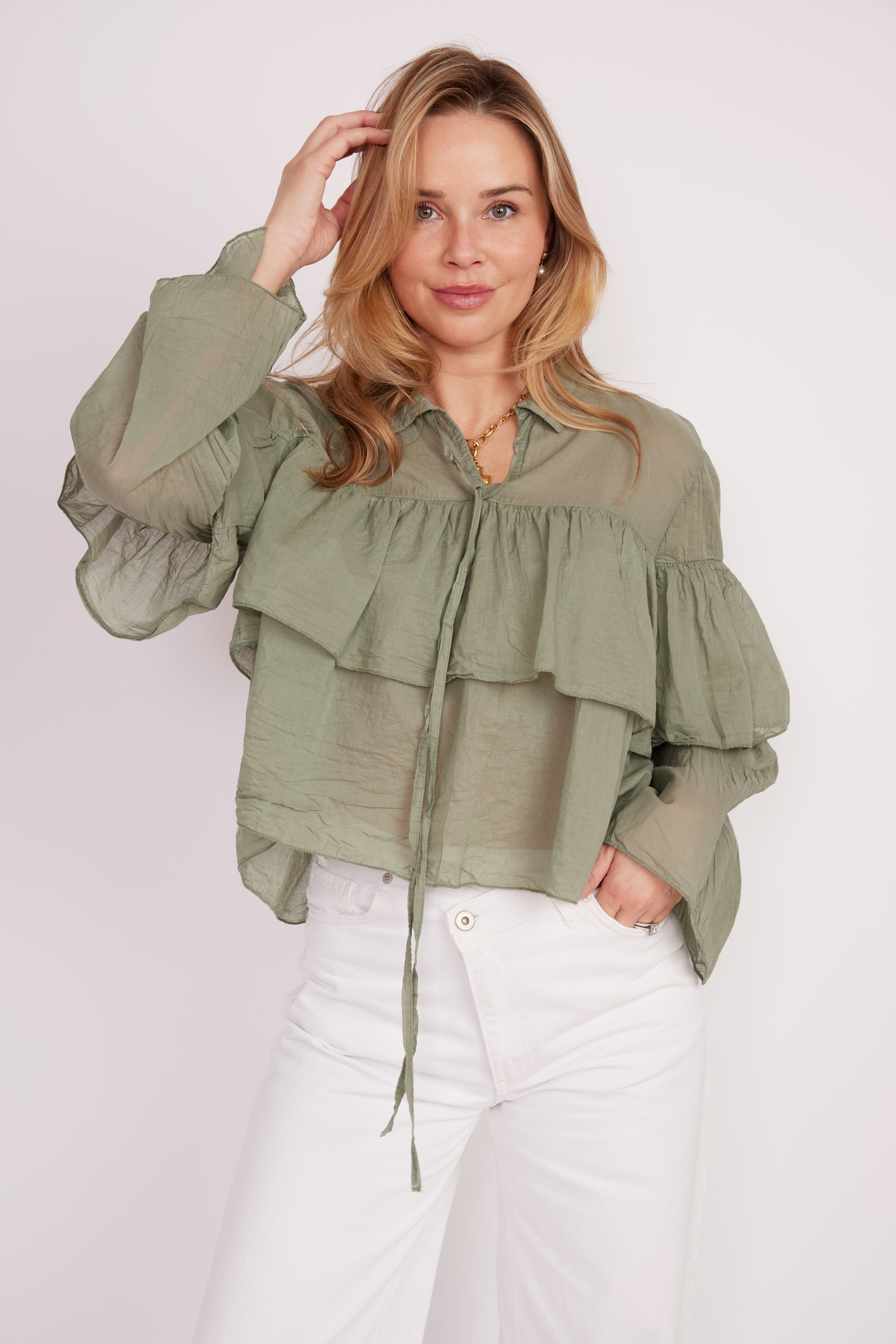 The Karina blouse is the perfect spring top. The layered front adds dimension and sophistication, making it easy to dress up or down.
