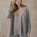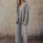 Indulge in cozy elegance with our Claudia V-Neck Sweater, crafted from irresistibly soft knit fabric that feels like a dream. This fan-favorite piece features a flattering neckline and high-low hem, creating a drapey silhouette that pairs beautifully with our Cleo Sweater Pants. Part of our Mix-and-Match Knitwear capsule.