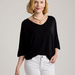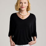 - A versatile essential, the Esma Knit Top brings softness and sophistication to your spring wardrobe. Its drapey silhouette, dolman 3/4 sleeves, and soft v-neck create a relaxed yet polished look perfect for any occasion. Pair it with our Madelyn Silk Pants for refined elegance, the Lenore Linen Pants for breezy charm, or your favorite jeans for effortless comfort.