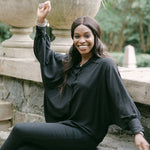 Step into the effortless charm of the Remi Shirt, a timeless wardrobe staple that takes the classic collared shirt to new heights. With its soft drape and graceful dolman sleeves, this piece offers a the perfect combination of sophistication and ease. Versatile enough to style in countless ways, Remi promises to be your go-to choice for any occasion. Embrace the romantic allure of this beloved shirt, and let it become a cherished favorite in your collection.