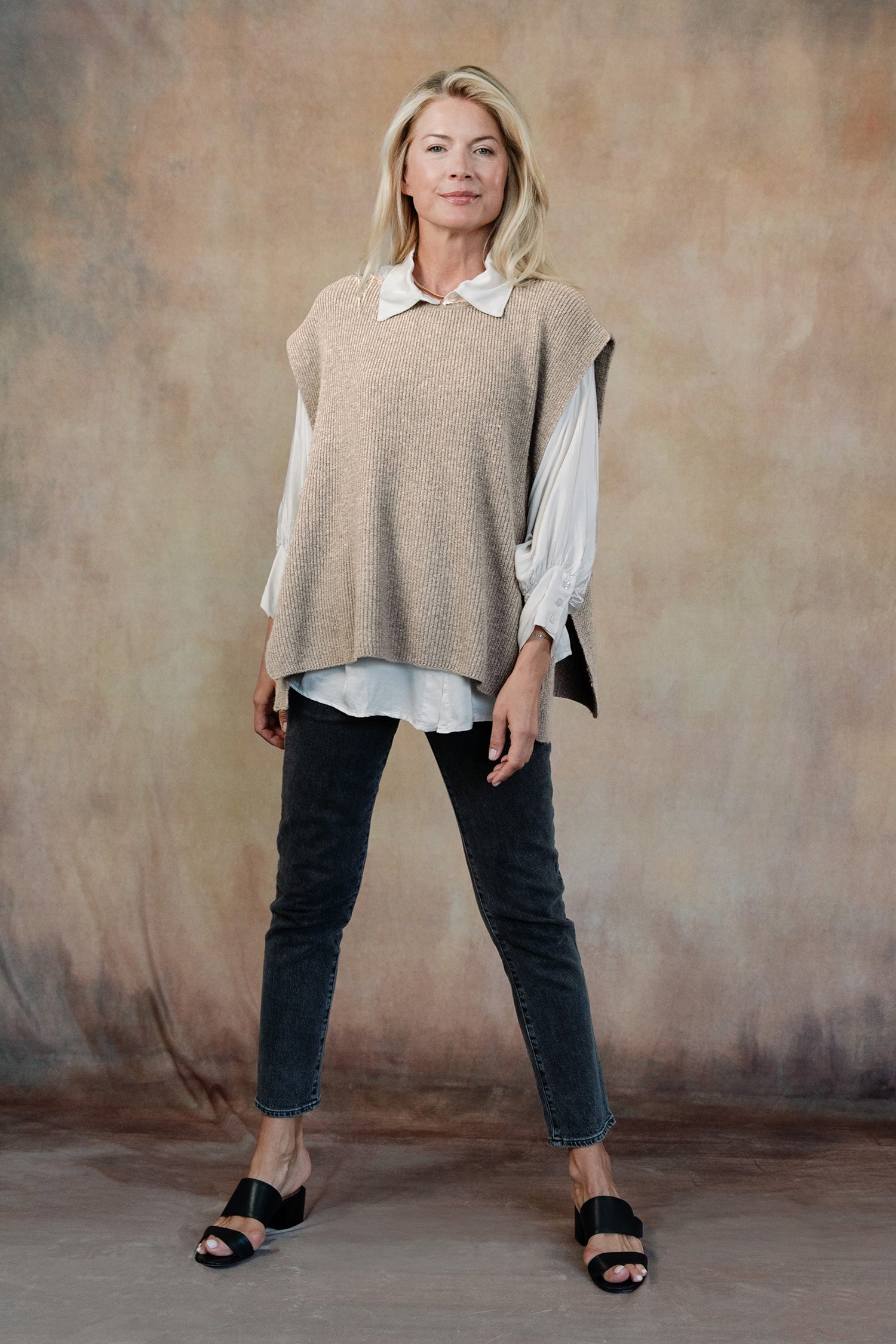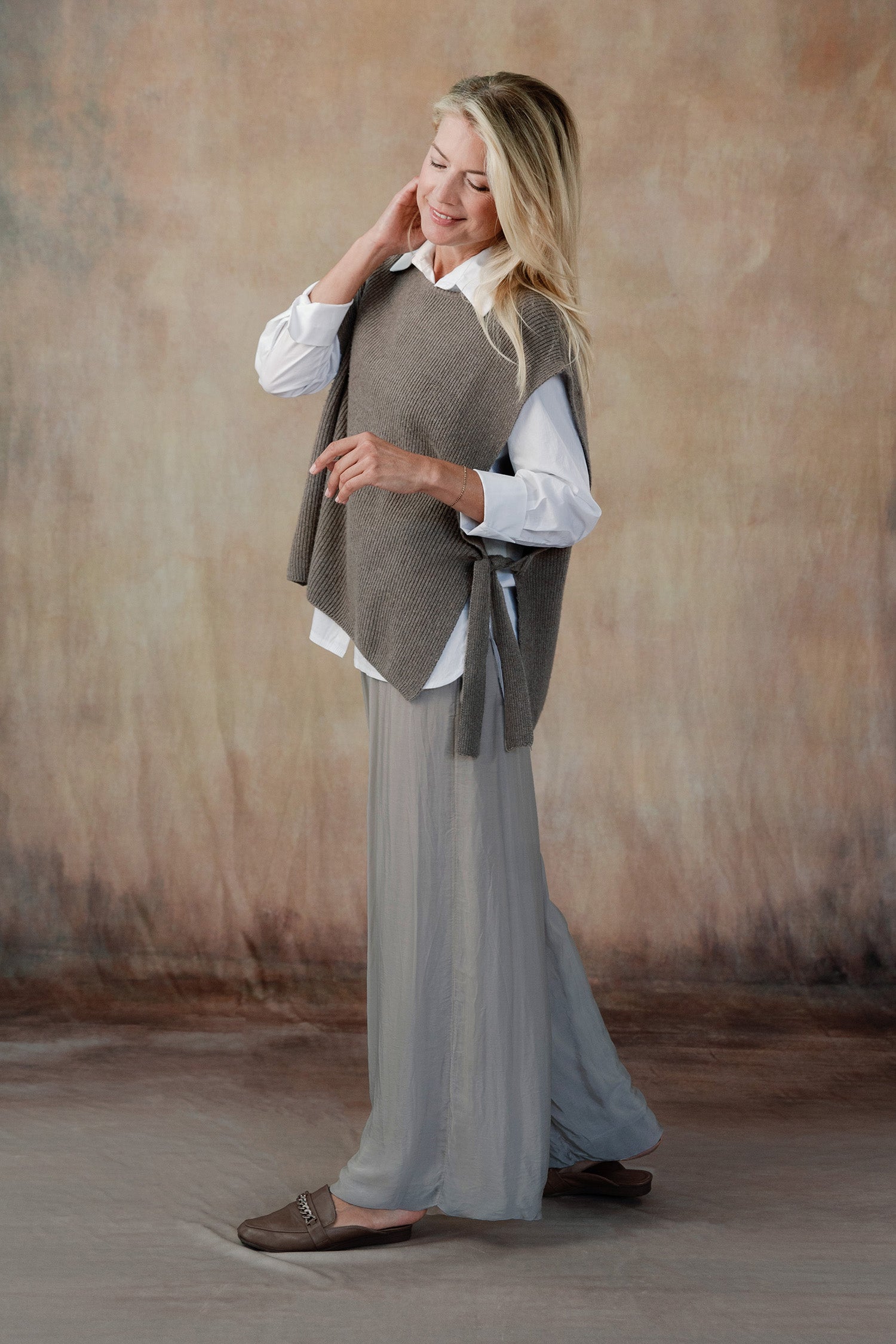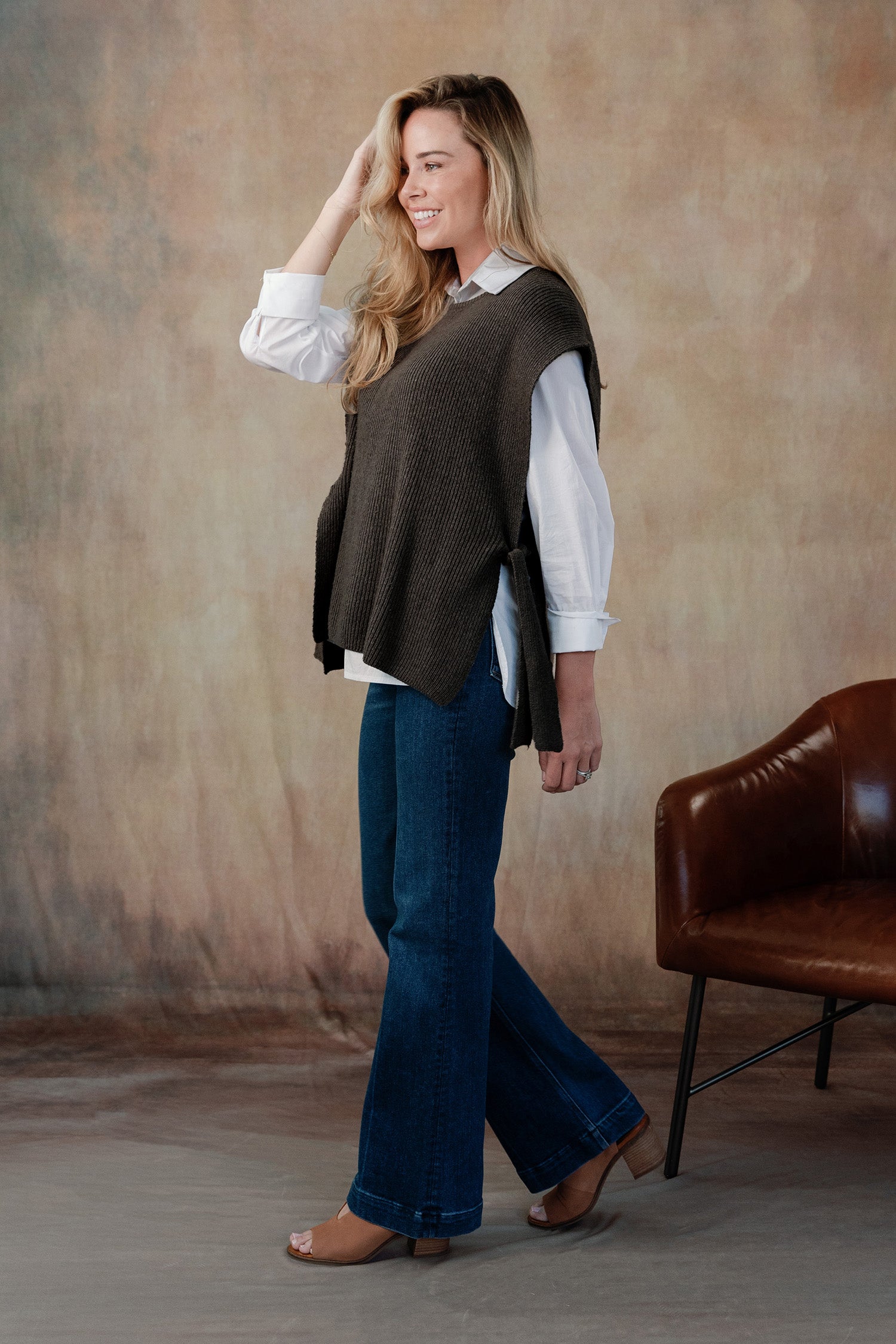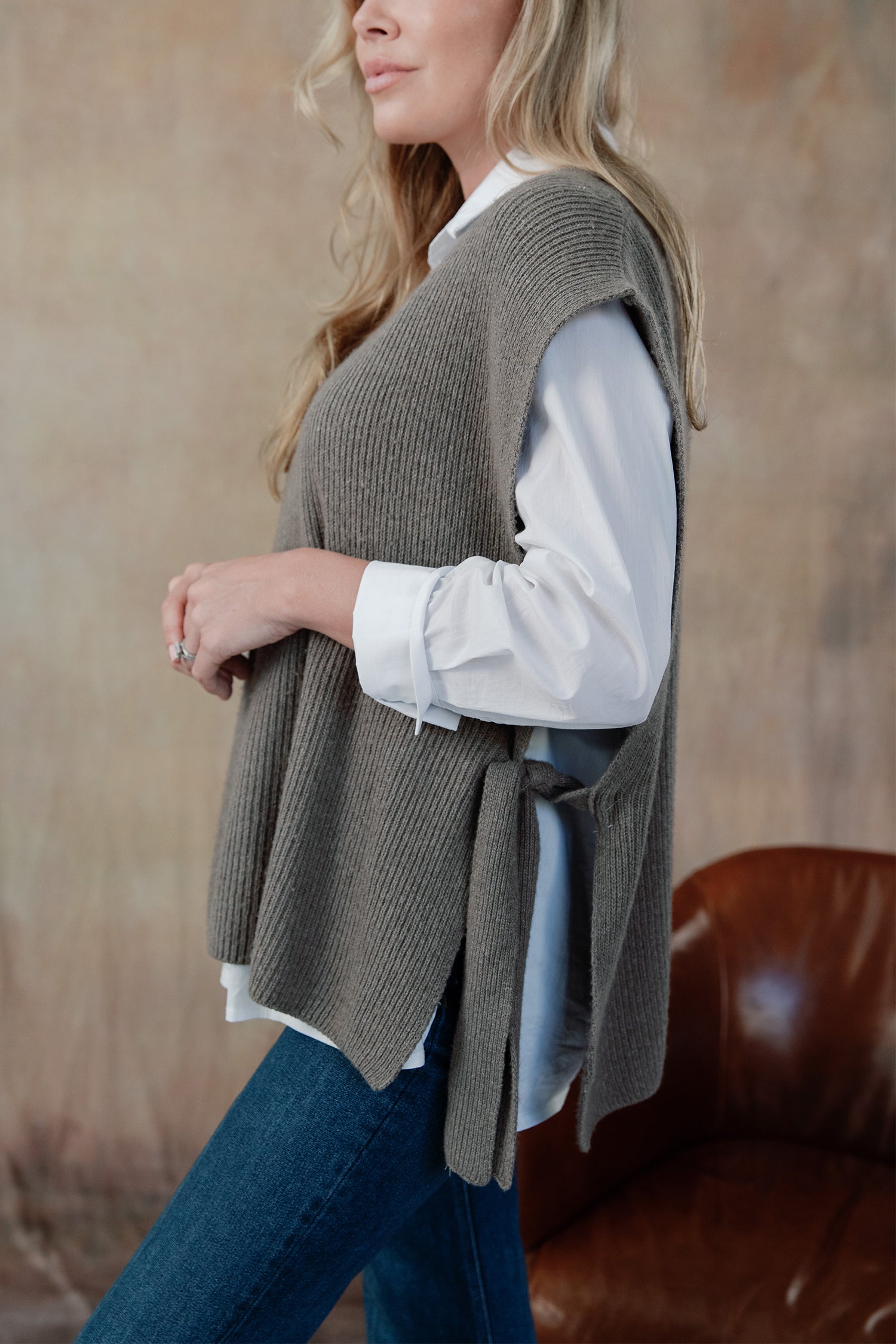 Shake up your fall wardrobe with the beloved Blythe sweater vest, a versatile piece that adds a touch of intrigue to your ensemble. Featuring a boat neck and open sides with ties, Blythe will inspire you to explore endless layering possibilities. Enjoy playful sophistication when you pair this style with our best-selling Remi Shirt or our whimsical new Rosa Satin Shirt.
