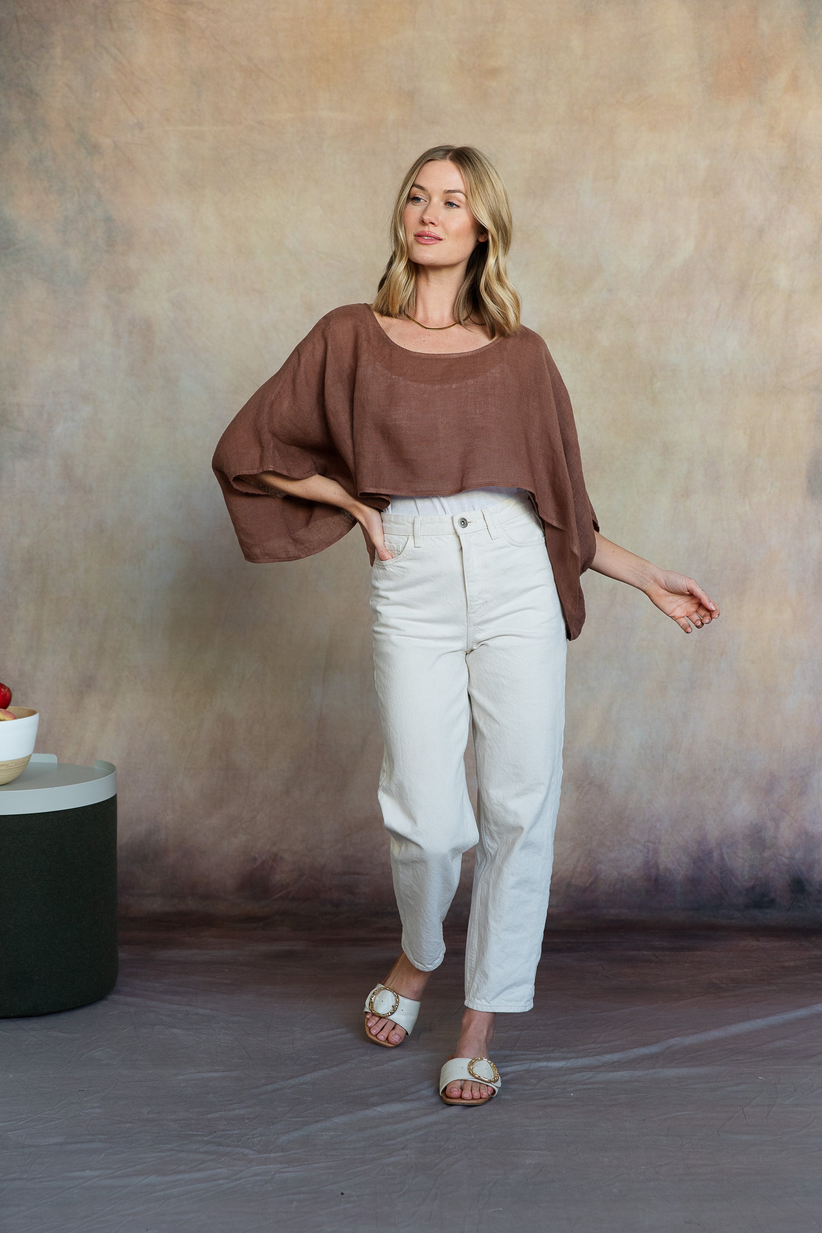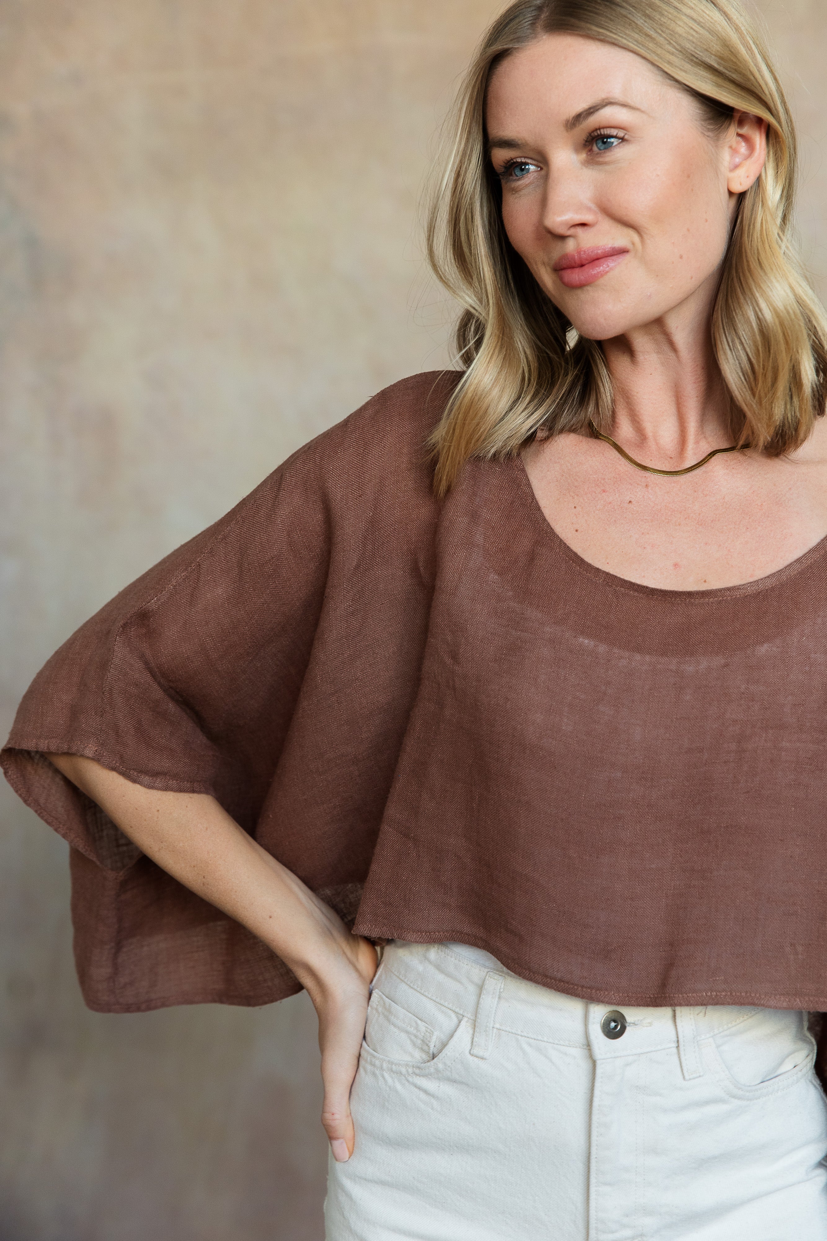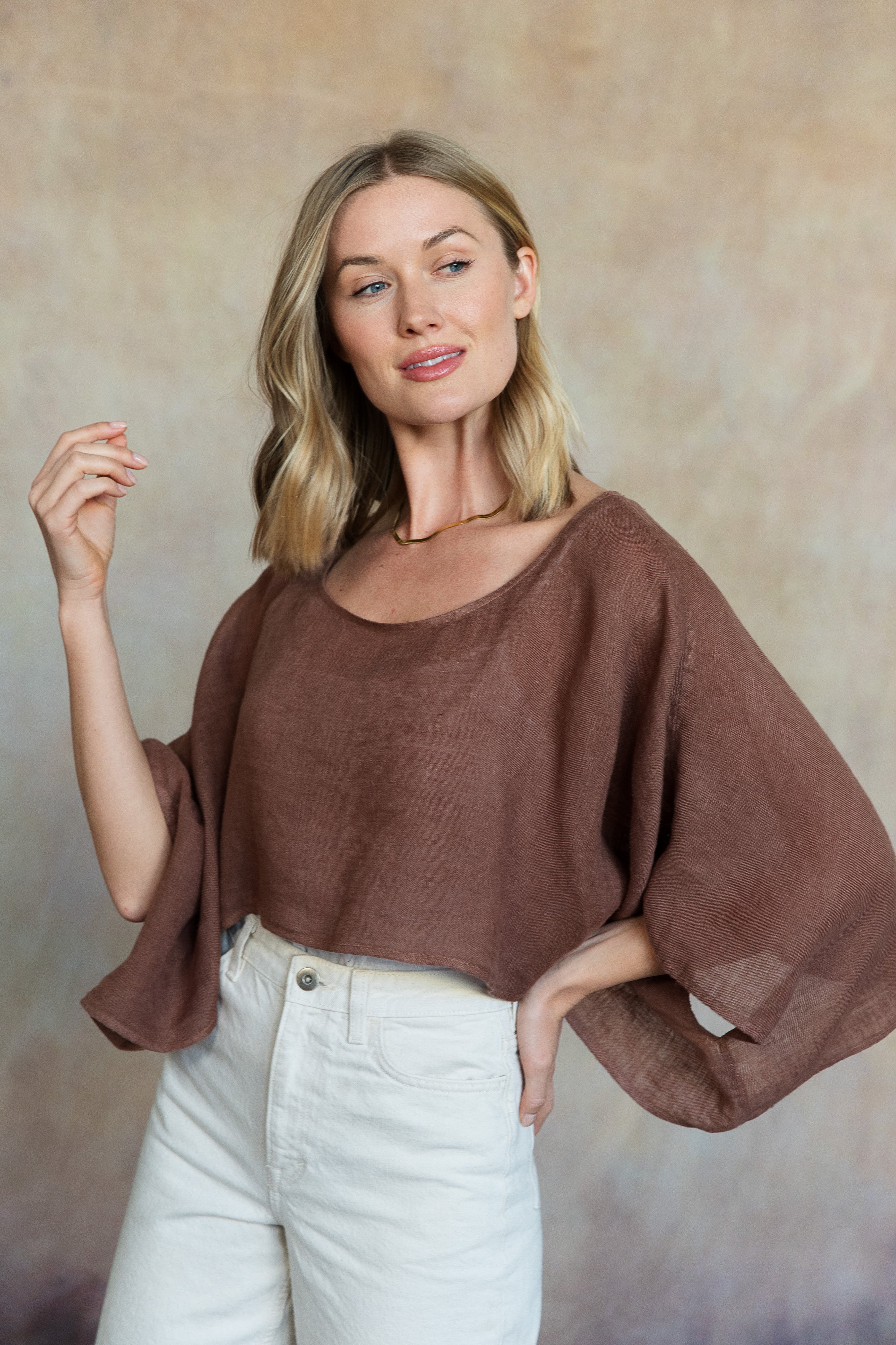 A light layer inspired by sun-drenched afternoons, the Lana Linen Topper is the perfect finishing touch. With its cropped silhouette and flowing dolman sleeves, this breezy piece is designed to complement camisoles and dresses alike. Layer it over the Marina Silk Dress for a delicate balance of texture or style it with the Lenore Linen Pants for a coordinated look. Part of our mix-and-match Italian Linen assortment.