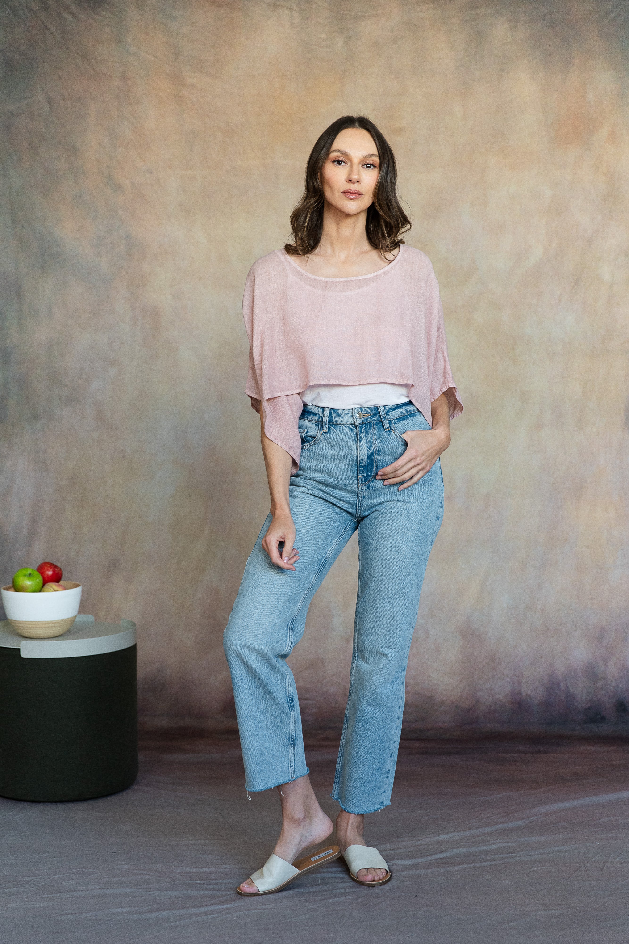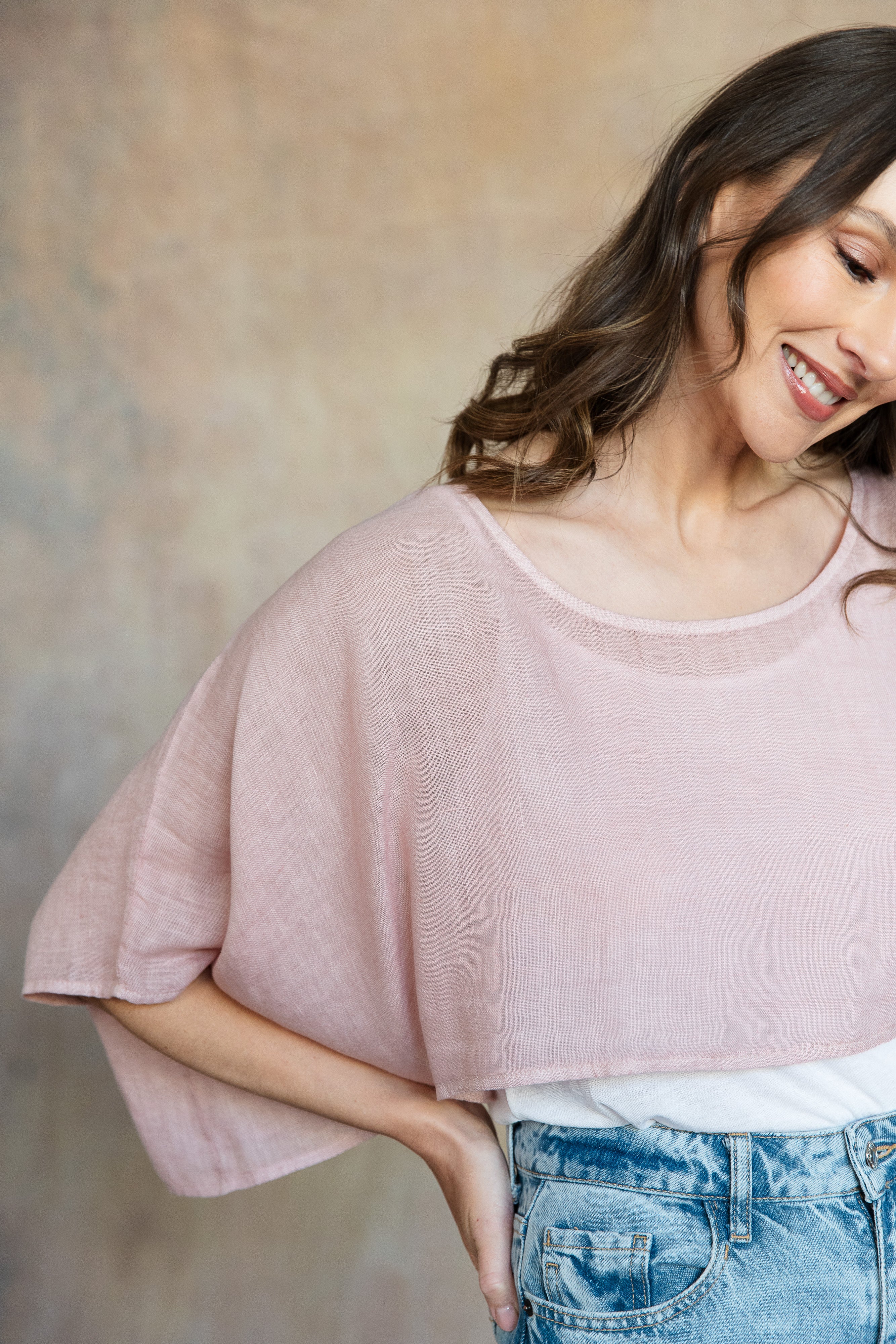 A light layer inspired by sun-drenched afternoons, the Lana Linen Topper is the perfect finishing touch. With its cropped silhouette and flowing dolman sleeves, this breezy piece is designed to complement camisoles and dresses alike. Layer it over the Marina Silk Dress for a delicate balance of texture or style it with the Lenore Linen Pants for a coordinated look. Part of our mix-and-match Italian Linen assortment.