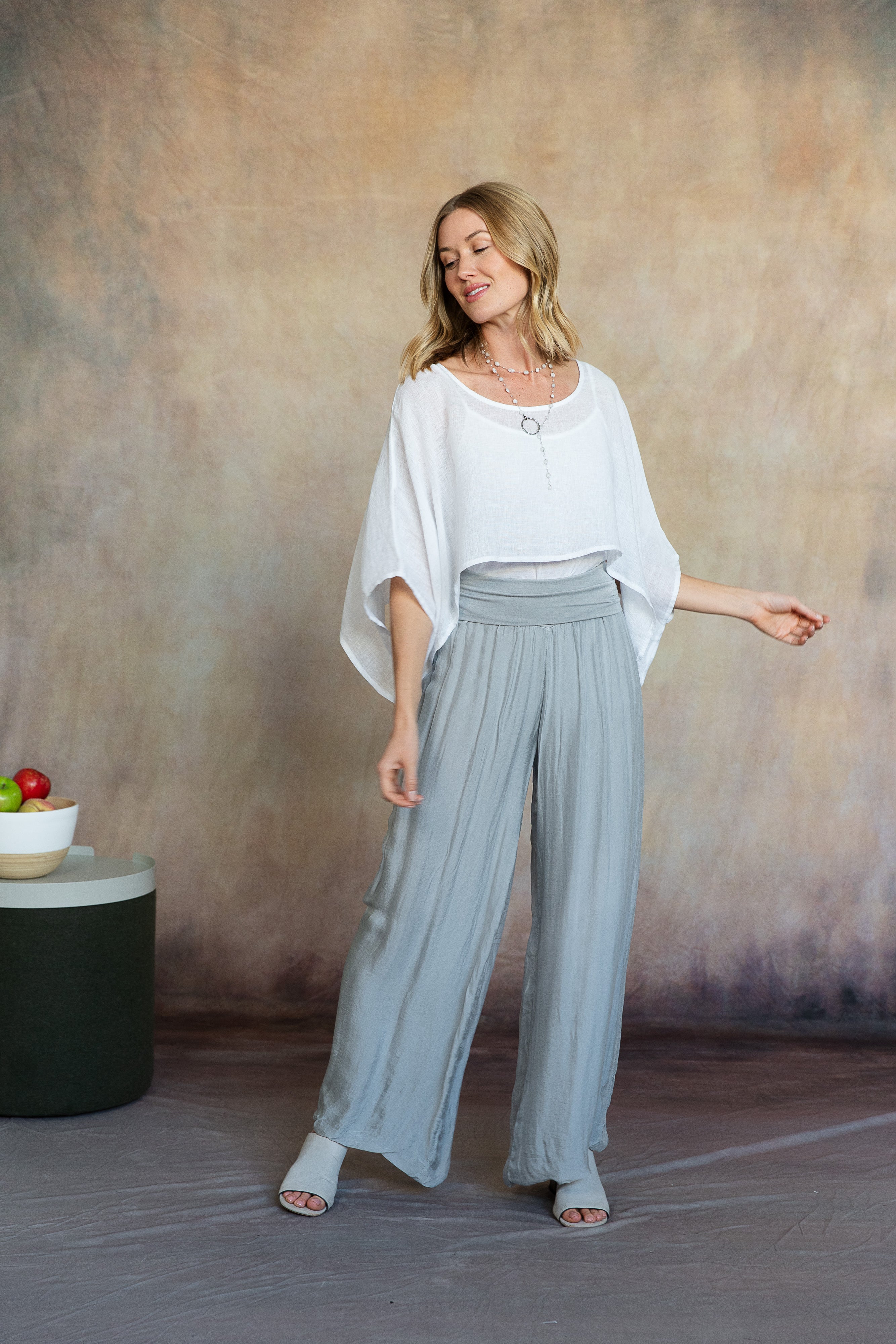 You'll swoon over our Madelyn Pants, where luxurious Italian silk meets impeccable design. These pants feature a comfortable waistband and a flattering wide-leg cut, offering a perfect blend of elegance and ease. Available in stunning colorways that seamlessly coordinate with our silk styles and cozy knitwear, the Madelyn Pants make full-body dressing an art form. Part of our mix-and-match Italian Silk assortment.