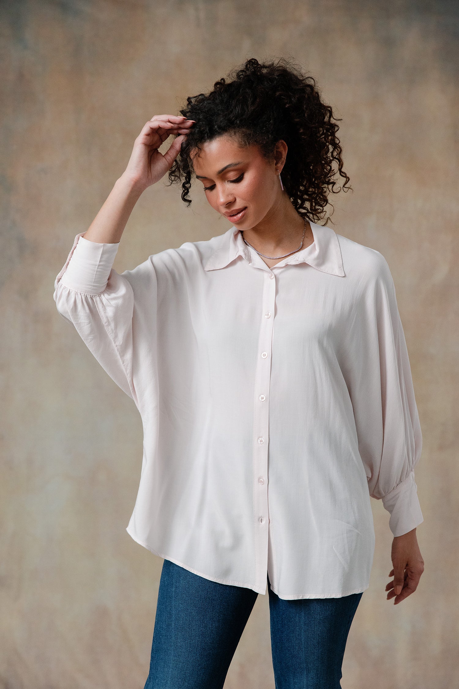 Step into the effortless charm of the Remi Shirt, a timeless wardrobe staple that takes the classic collared shirt to new heights. With its soft drape and graceful dolman sleeves, this piece offers a the perfect combination of sophistication and ease. Versatile enough to style in countless ways, Remi promises to be your go-to choice for any occasion. Embrace the romantic allure of this beloved shirt, and let it become a cherished favorite in your collection.