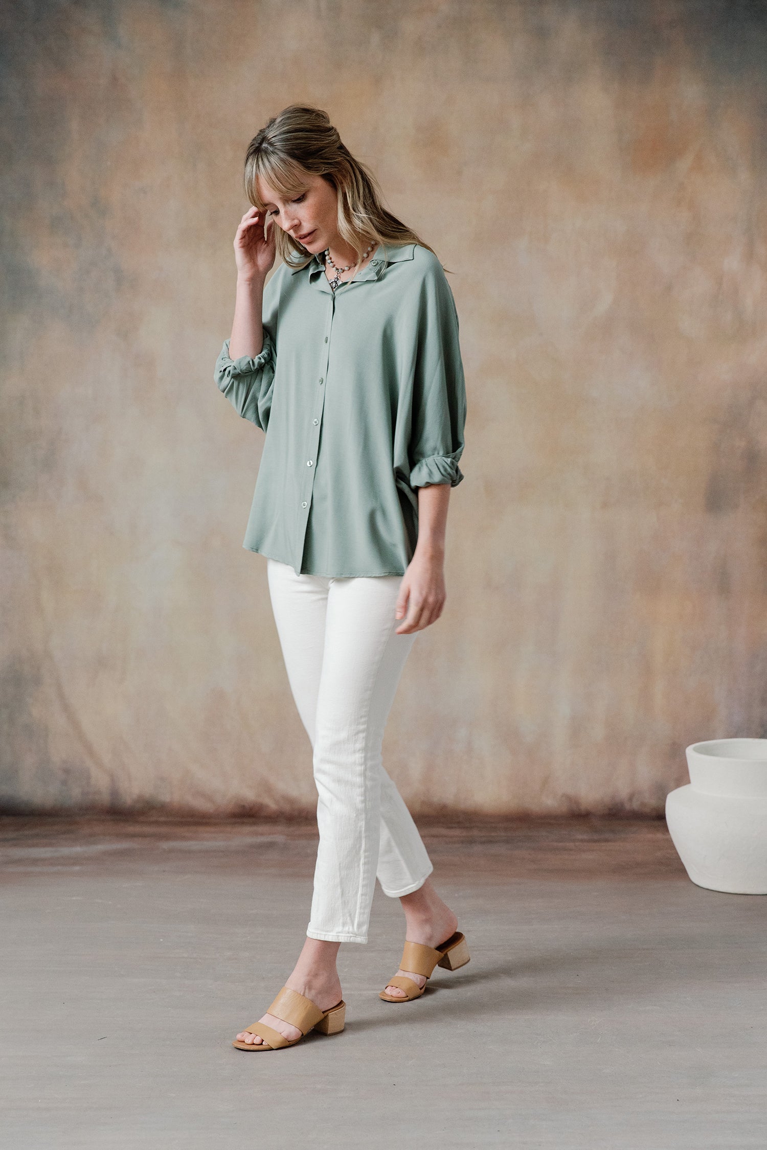 Step into the effortless charm of the Remi Shirt, a timeless wardrobe staple that takes the classic collared shirt to new heights. With its soft drape and graceful dolman sleeves, this piece offers a the perfect combination of sophistication and ease. Versatile enough to style in countless ways, Remi promises to be your go-to choice for any occasion. Embrace the romantic allure of this beloved shirt, and let it become a cherished favorite in your collection.