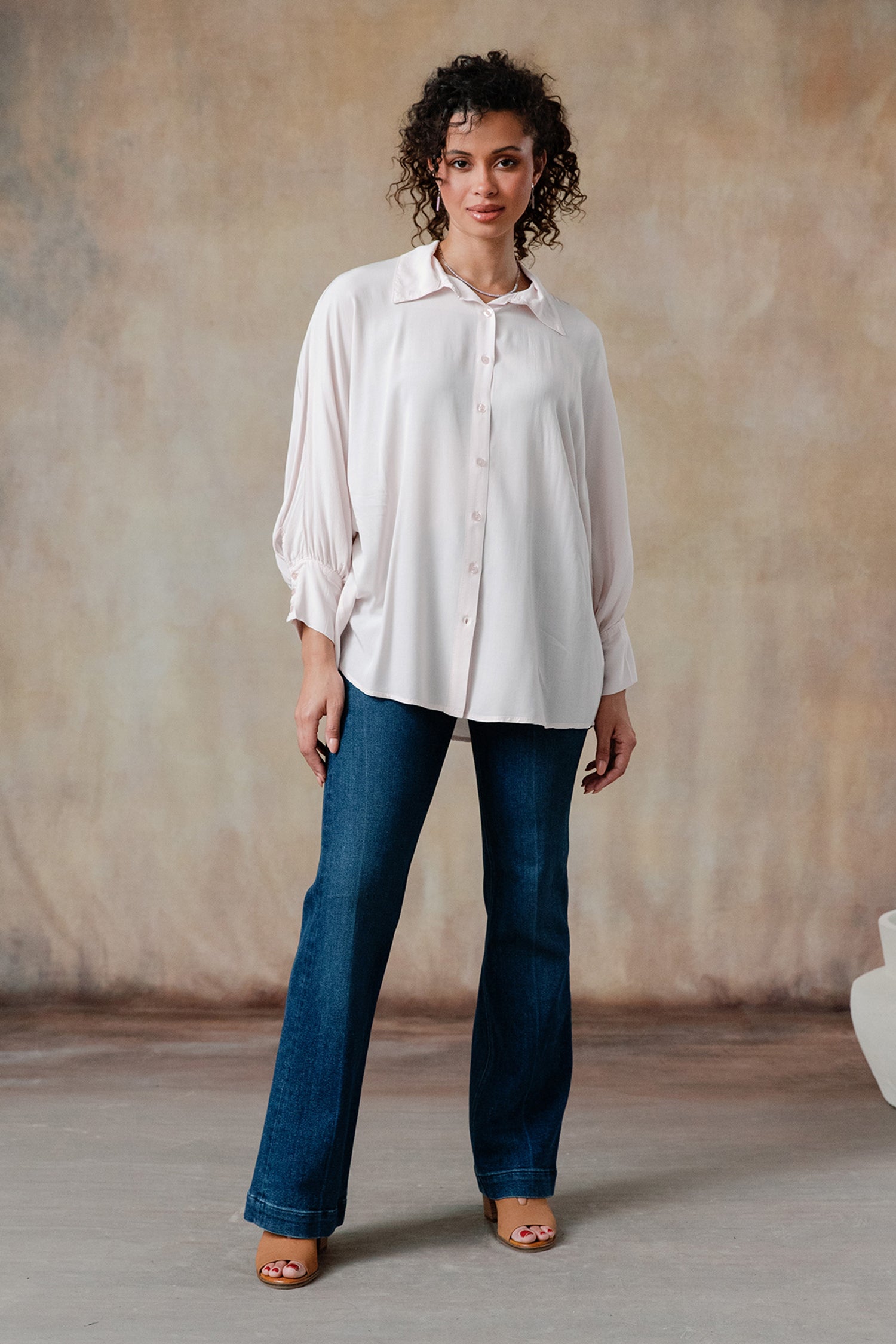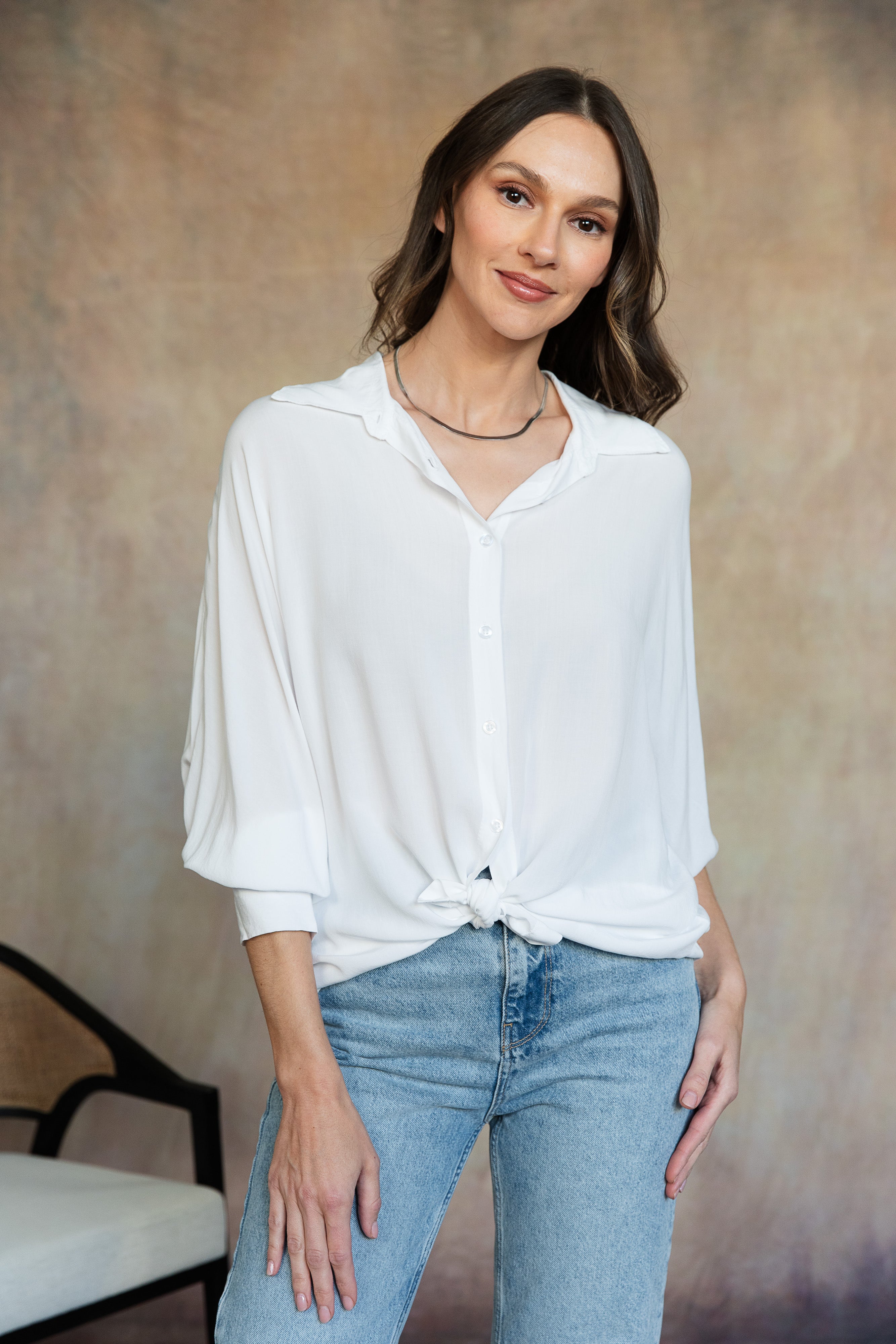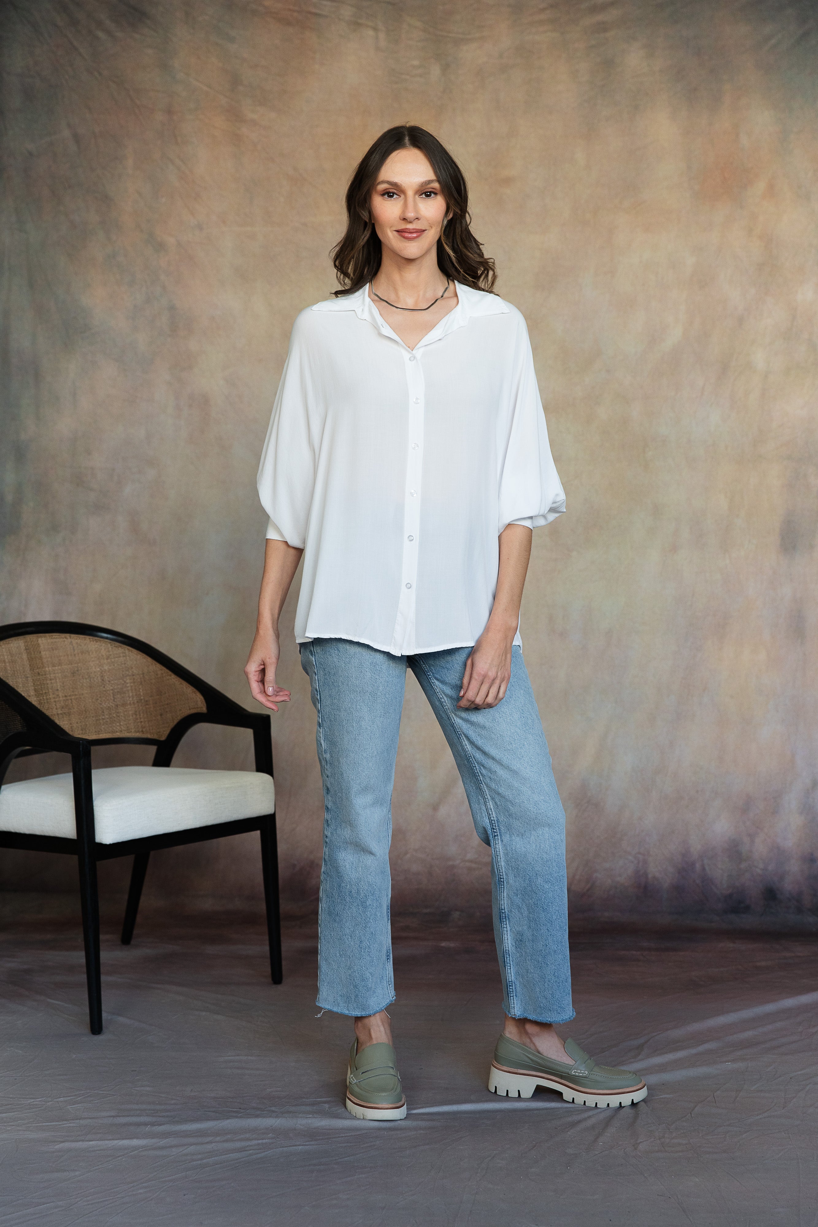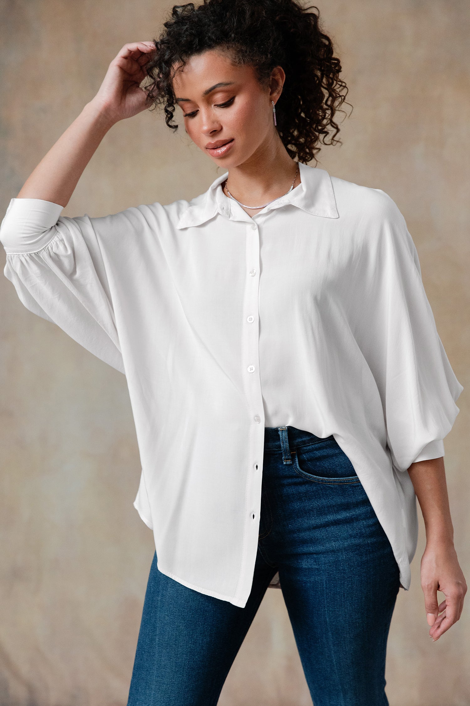 Step into the effortless charm of the Remi Shirt, a timeless wardrobe staple that takes the classic collared shirt to new heights. With its soft drape and graceful dolman sleeves, this piece offers a the perfect combination of sophistication and ease. Versatile enough to style in countless ways, Remi promises to be your go-to choice for any occasion. Embrace the romantic allure of this beloved shirt, and let it become a cherished favorite in your collection.