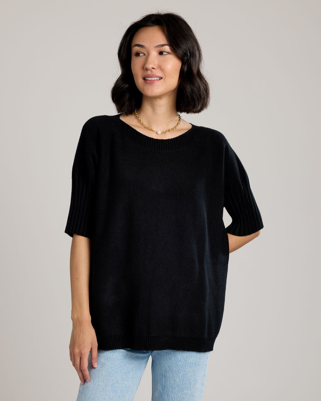 - Featuring a gentle neckline and a slightly blousier fit through the body,the Caterina knit top drapes with ease while still feeling polished. Ribbed 3/4 sleeves add a touch of texture and structure, creating a balanced look that?s equally suited for casual days or elevated moments. Made in Italy from a breathable knit, the Caterina is your go-to for chic comfort?season after season.