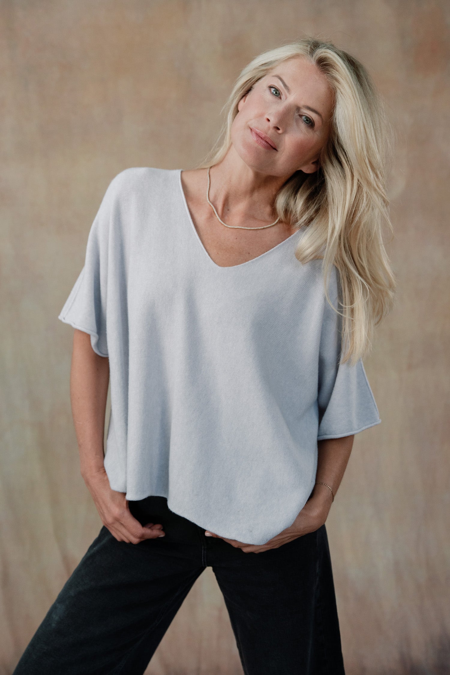 Our Coletta Short Sleeve Sweater is crafted from our signature buttery-soft knit fabric, a go-to piece for moments of relaxed sophistication. It features a v-neck, short sleeves, and flattering silhouette you'll fall for again and again. Perfectly paired with our Cleo Sweater Pants, Coletta creates a seamless blend of style and coziness. Part of our Mix-and-Match Knitwear capsule.