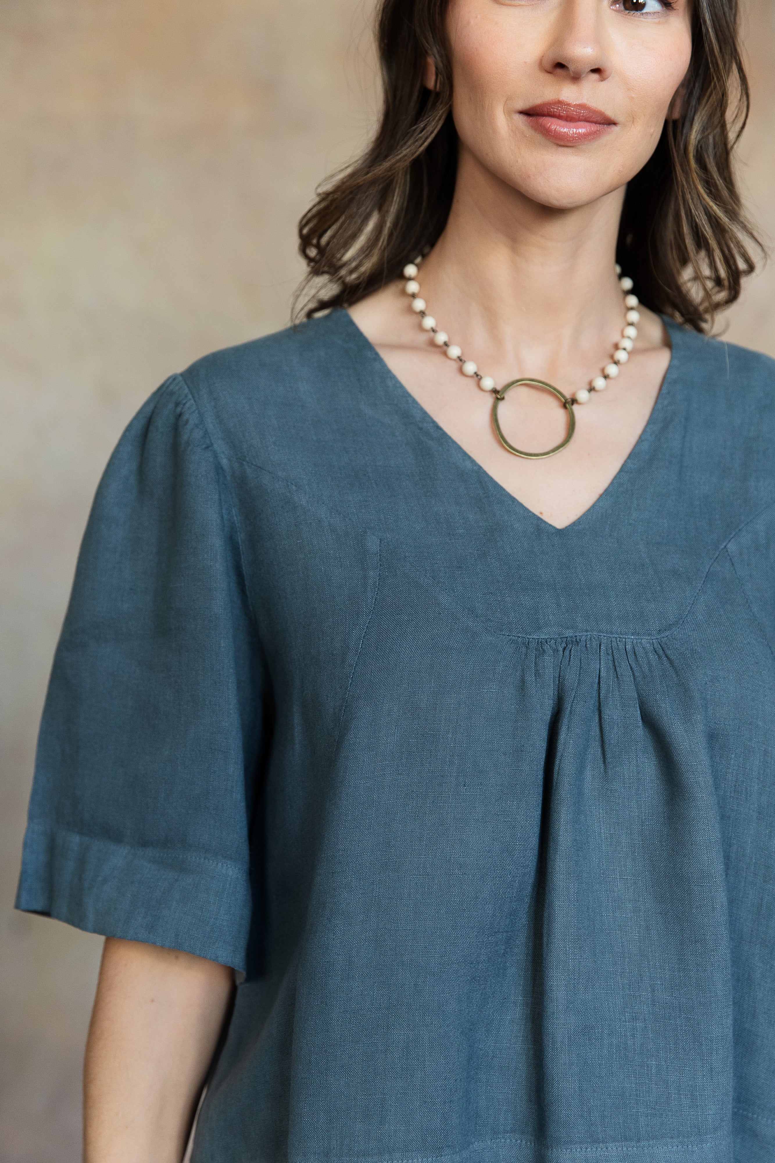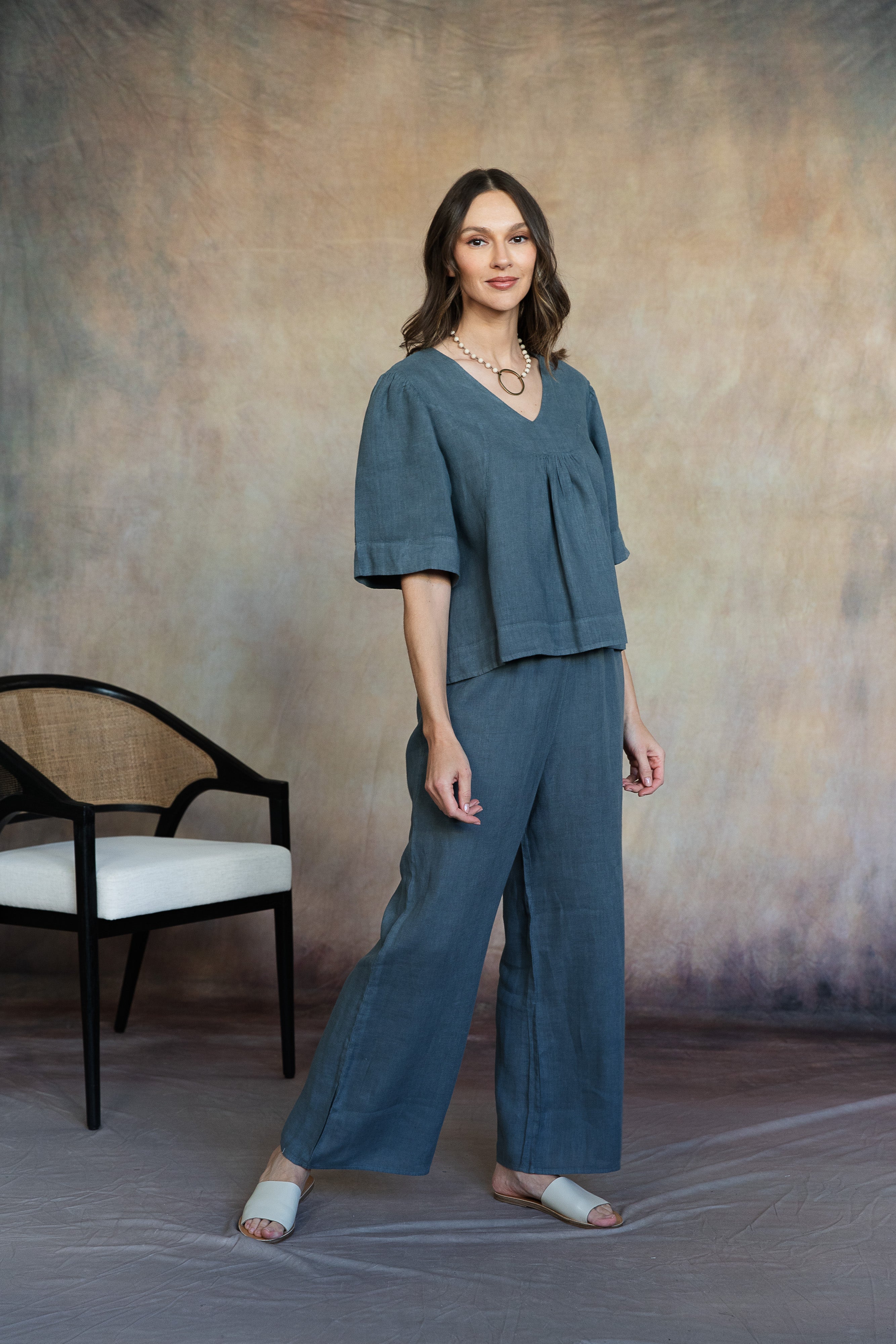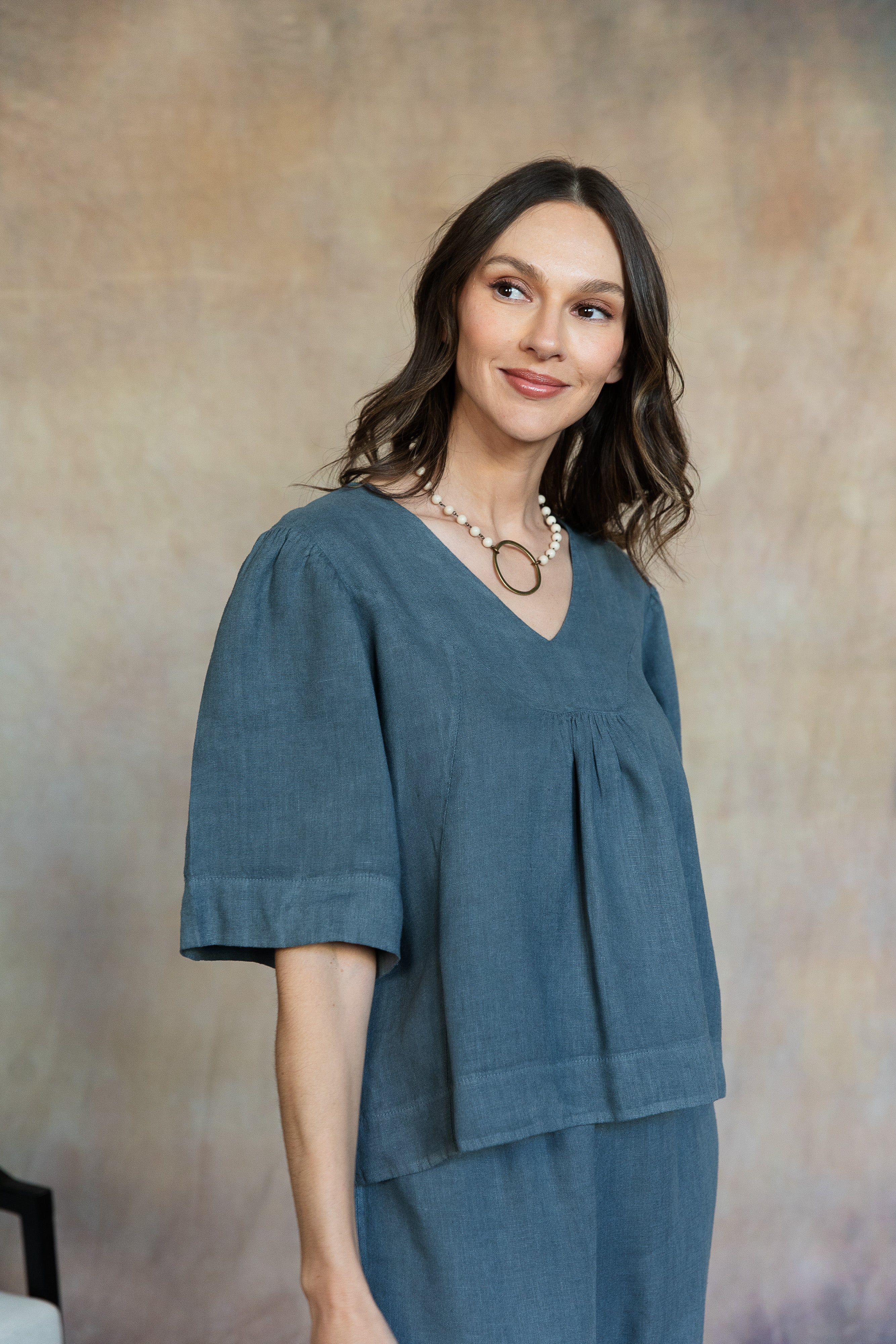Softly feminine, the Amelie Linen Top is a springtime essential with romantic details. The wide v-neckline and puff half-sleeves meet wide hems, creating a silhouette that feels as fresh as the season itself. Wear it with our Lenore Linen Pants for an effortlessly coordinated look or with jeans for easy, everyday charm. Part of our mix-and-match Italian Linen assortment.