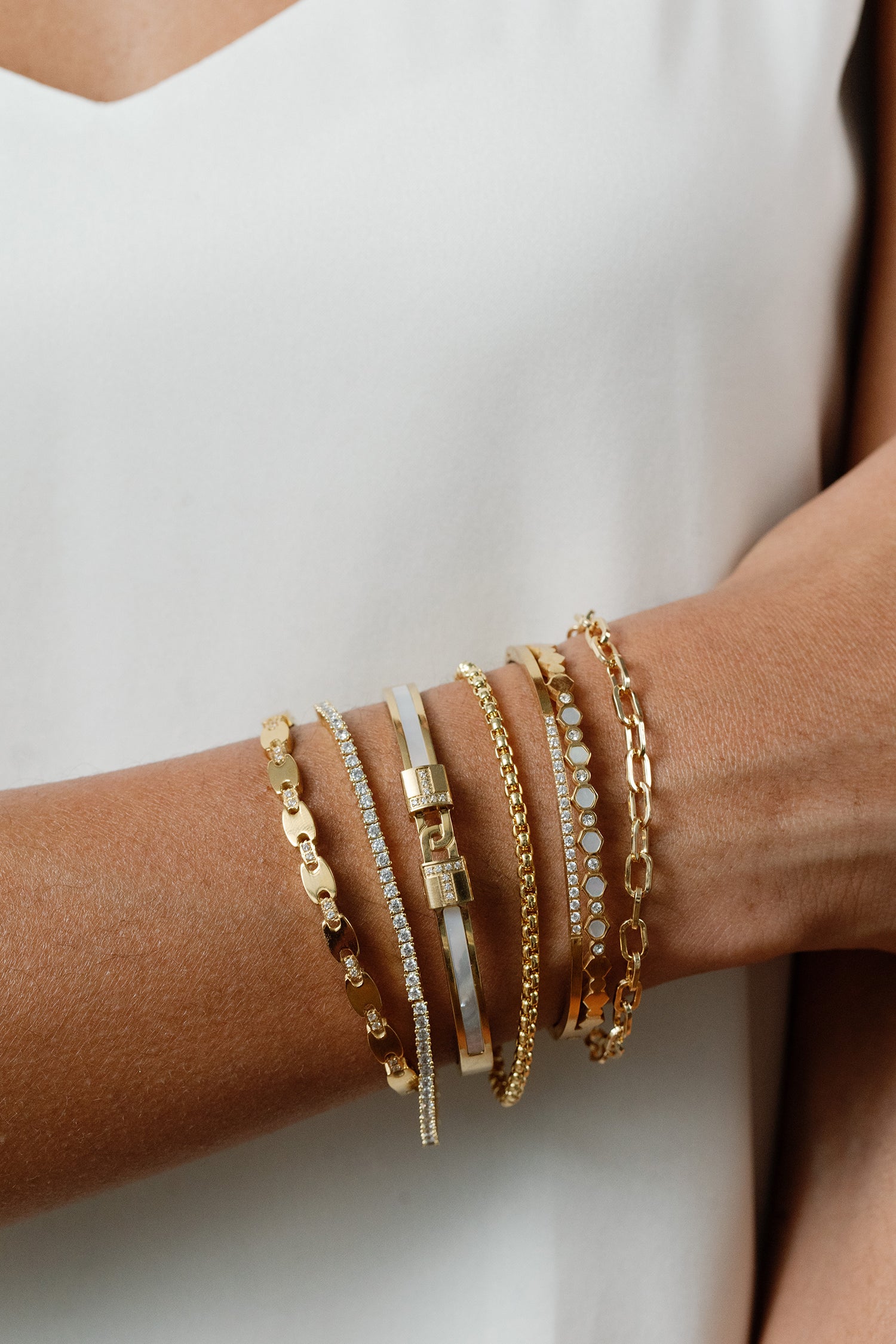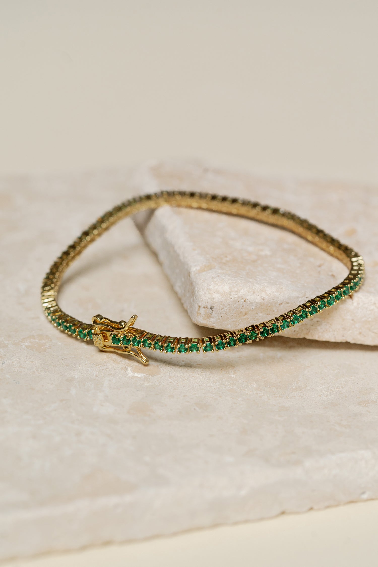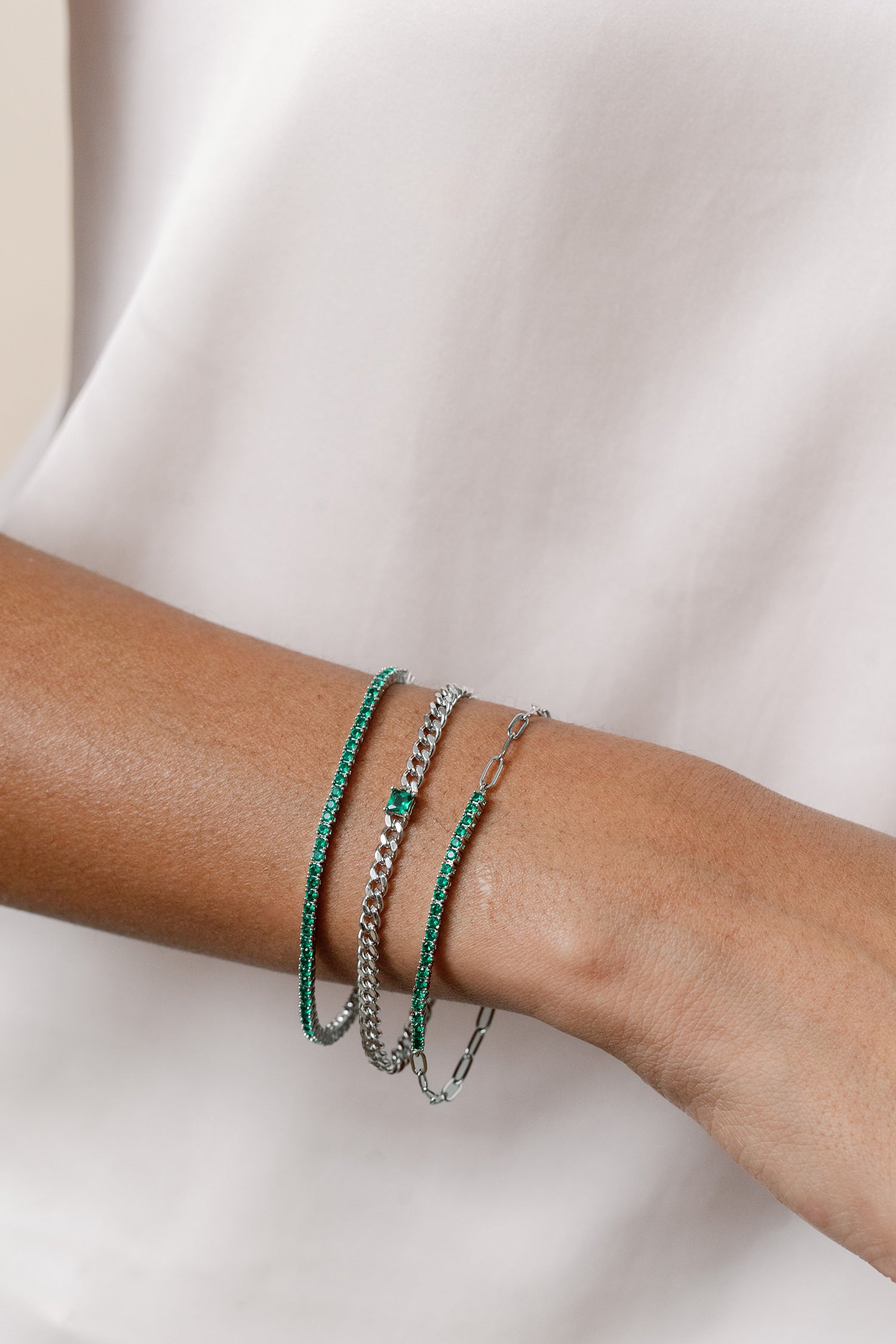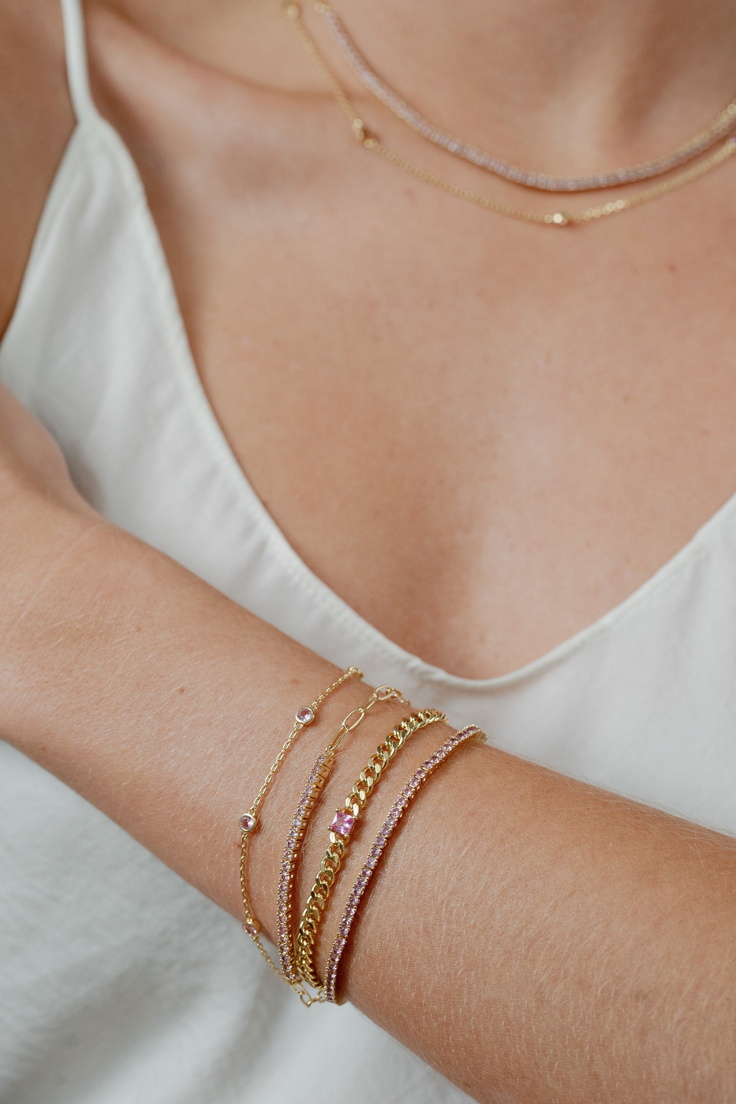 Revel in timeless elegance with the Eugenie Tennis Bracelet, meticulously crafted with hand-set 2mm simulated stones and a classic tennis clasp. Inspired by the regal elegance of Princess Eugenie and her incomparable collection of stately jewels, this bracelet exudes grace. Perfect for adding a touch of sparkle to any ensemble, Eugenie is a symbol of refined taste and enduring beauty. Embrace the romance of royalty and let this bracelet become a treasured piece in your collection, fit for every special occasion and everyday elegance. Part of our Stackable Jewelry assortment.