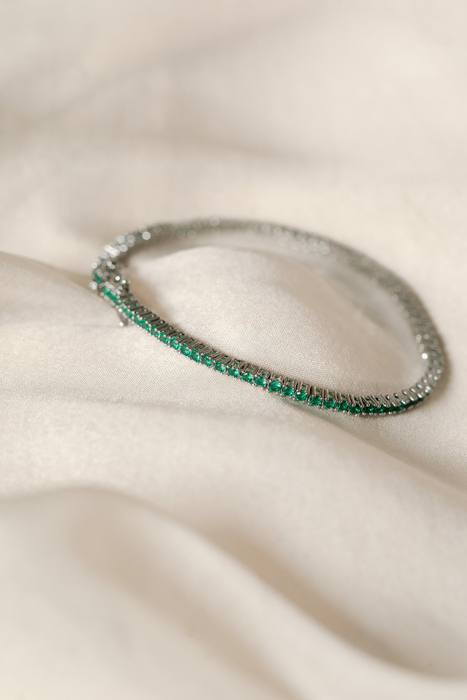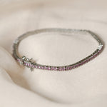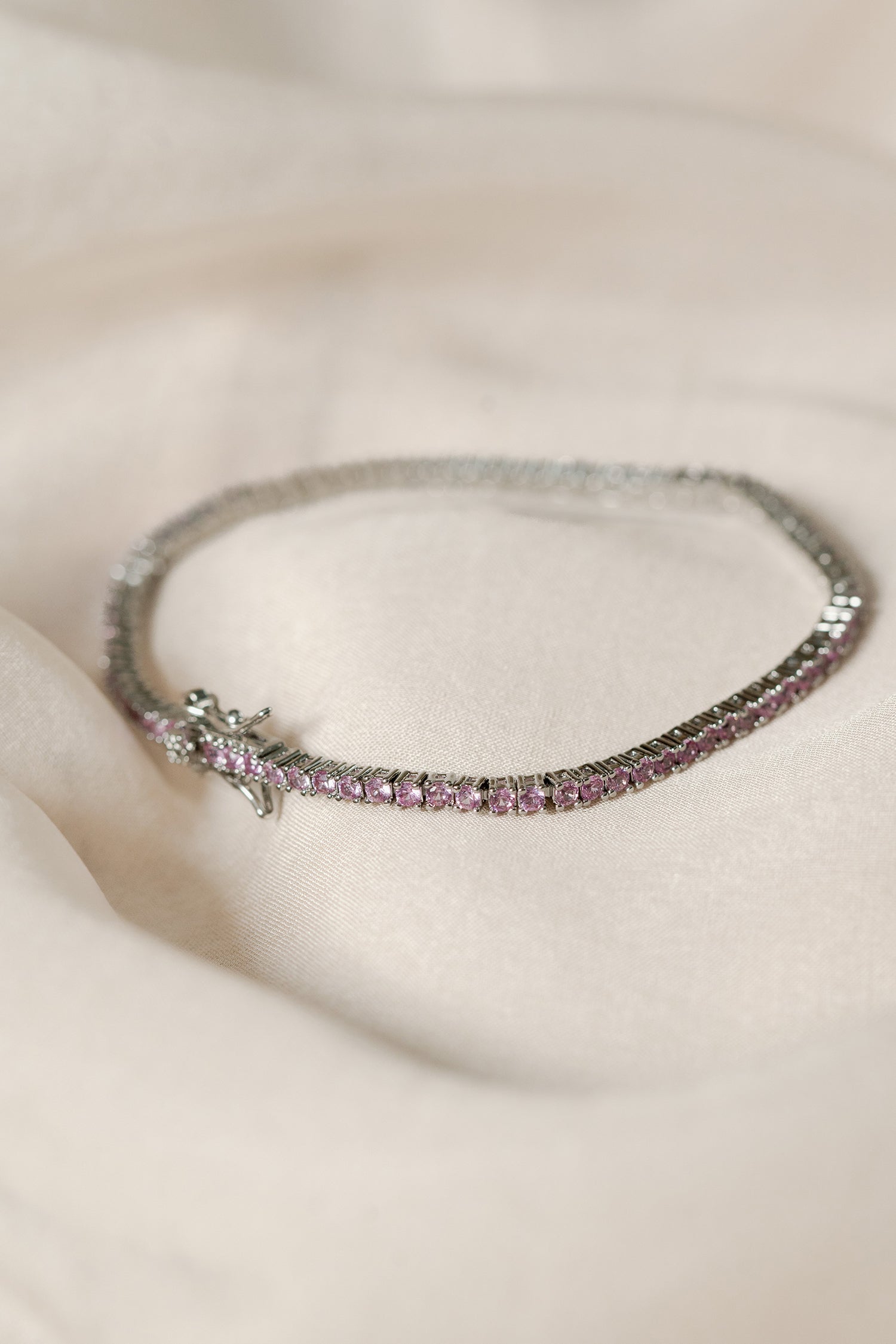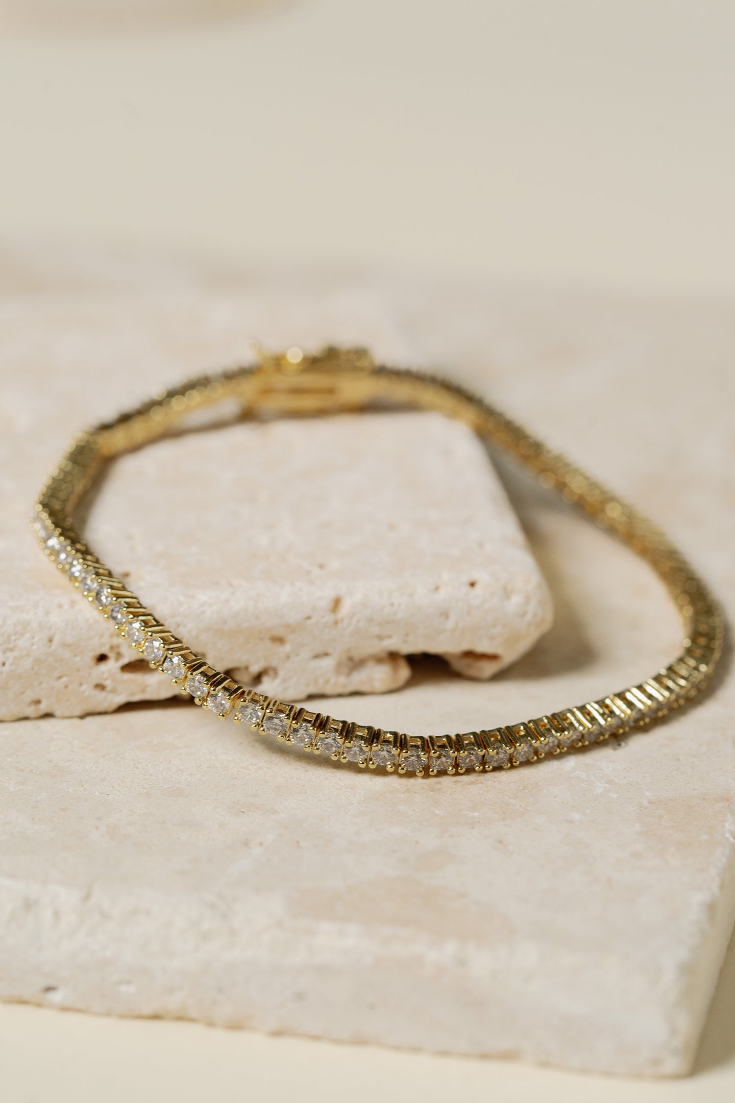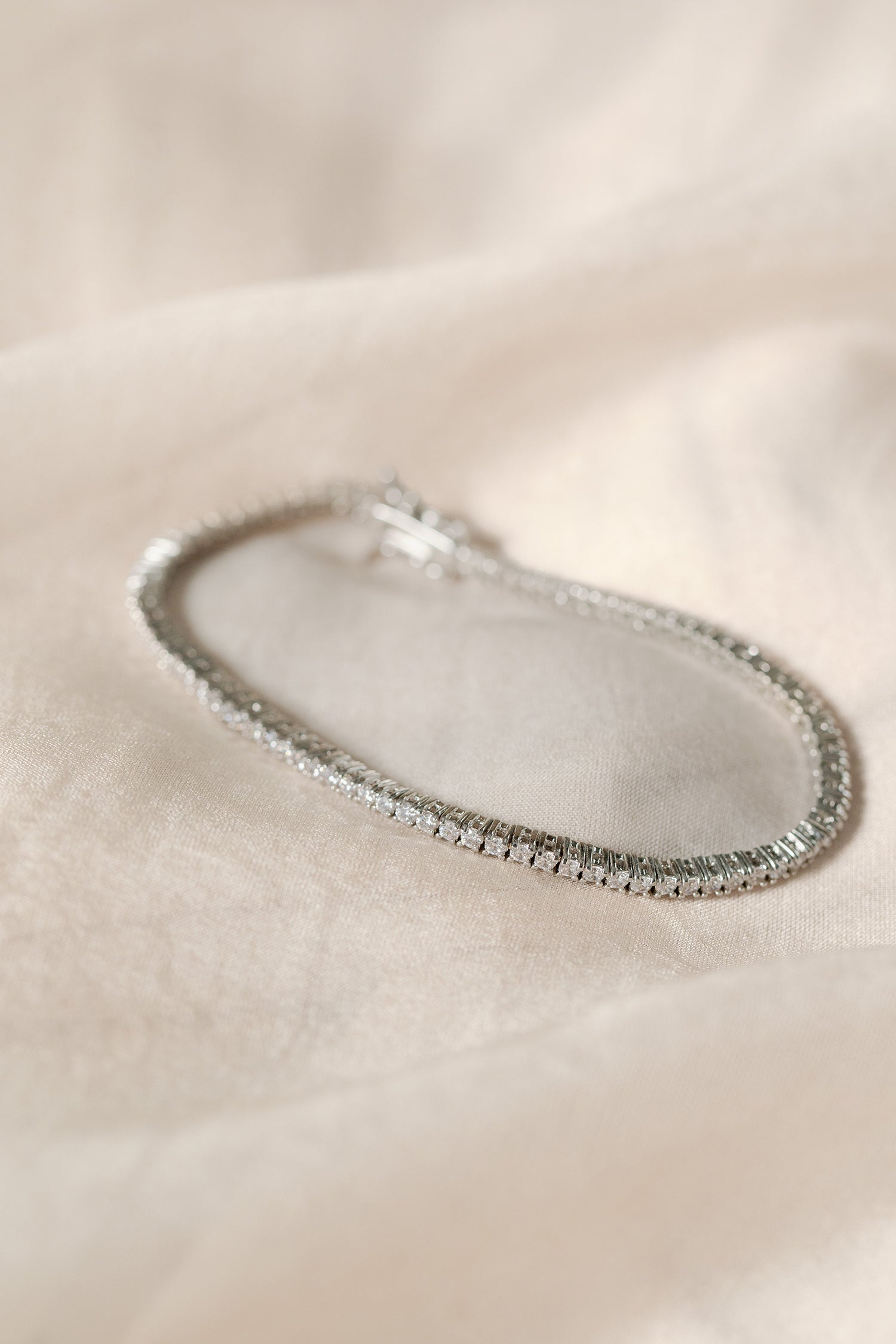 - Tennis bracelet with 2mm claw-set pavé stones, tennis closure.