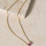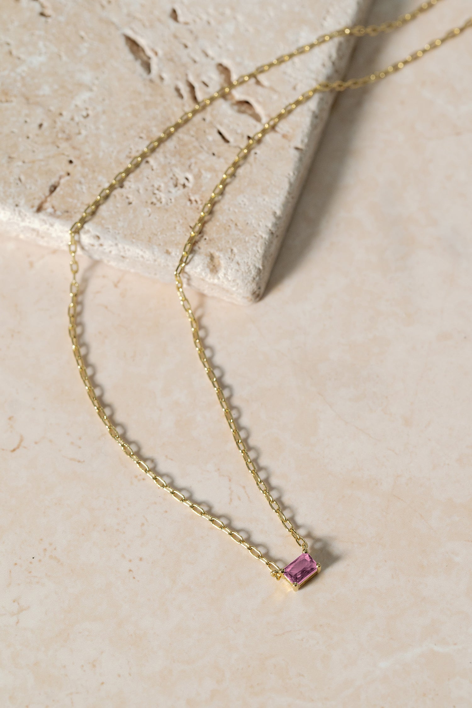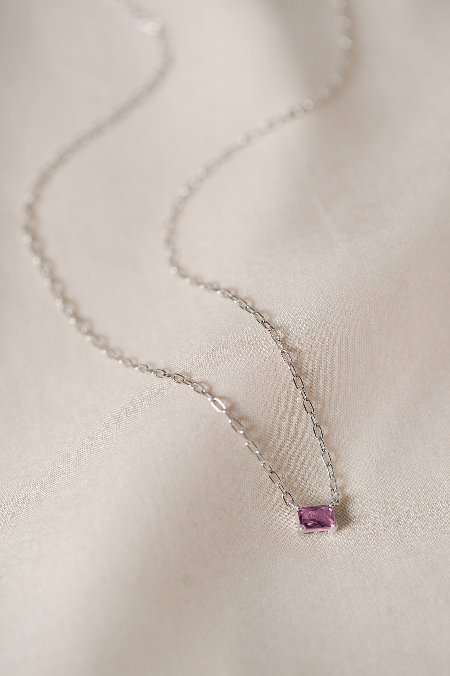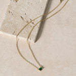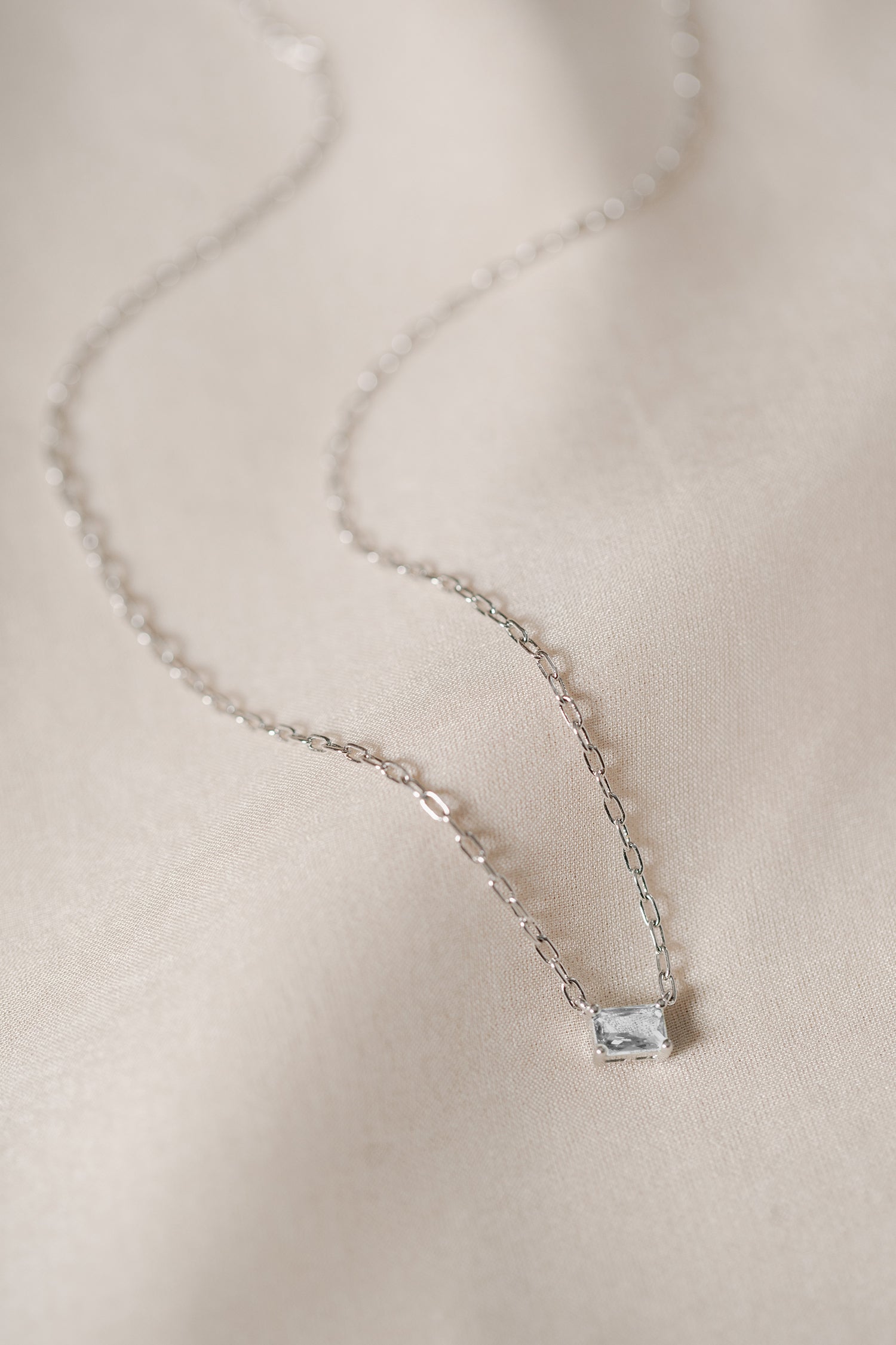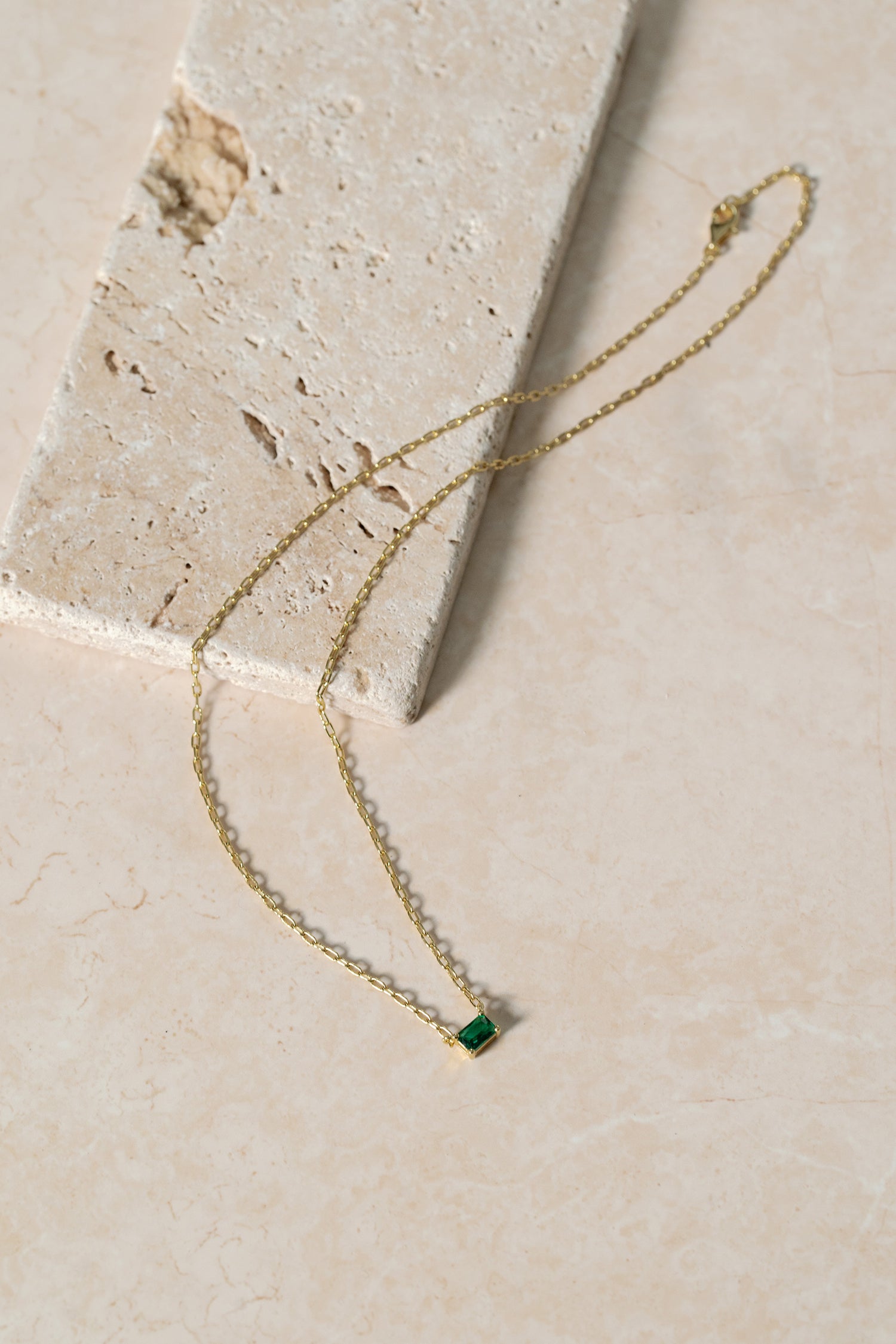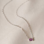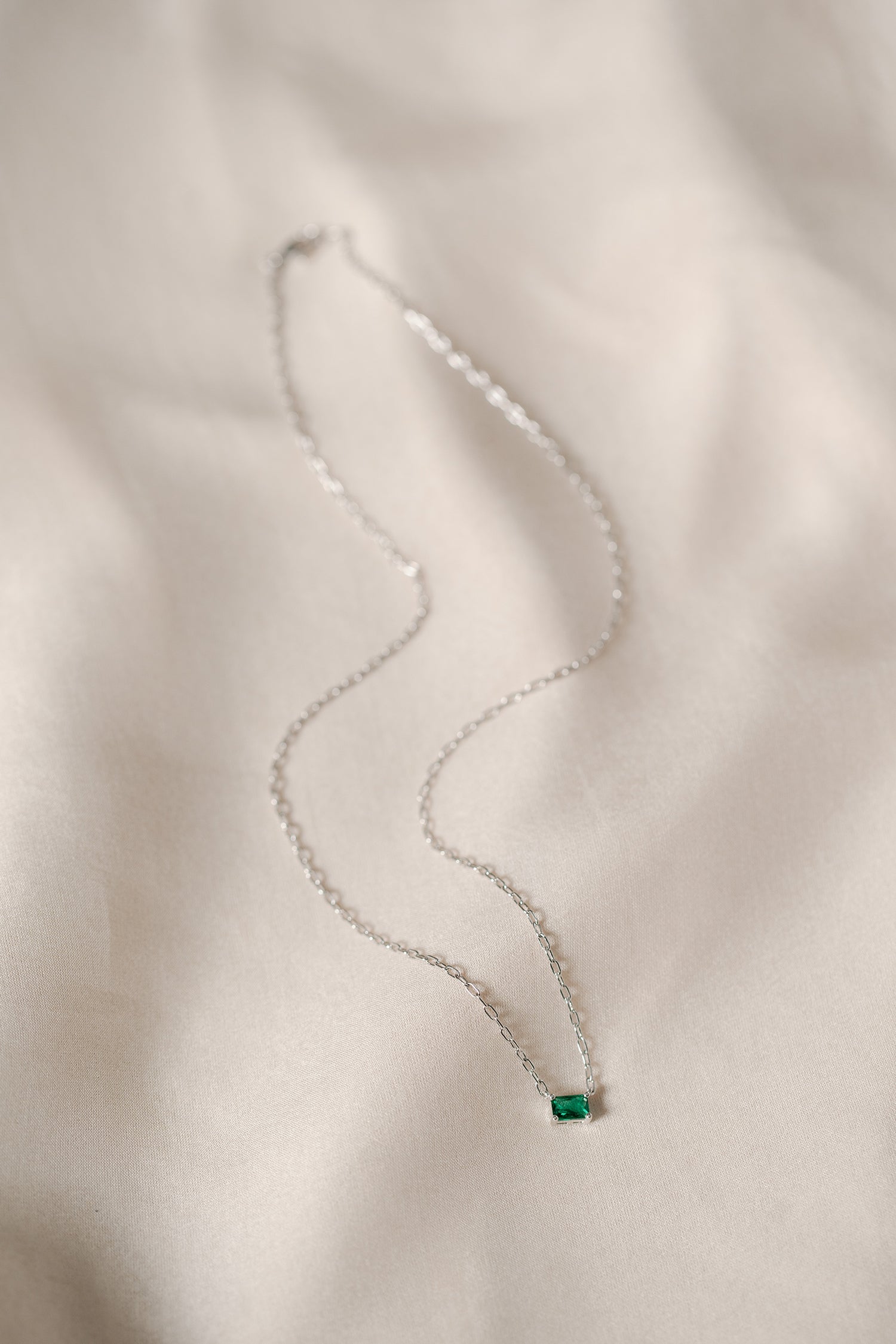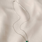 • Chain necklace with one claw-set emerald cut simulated stone.