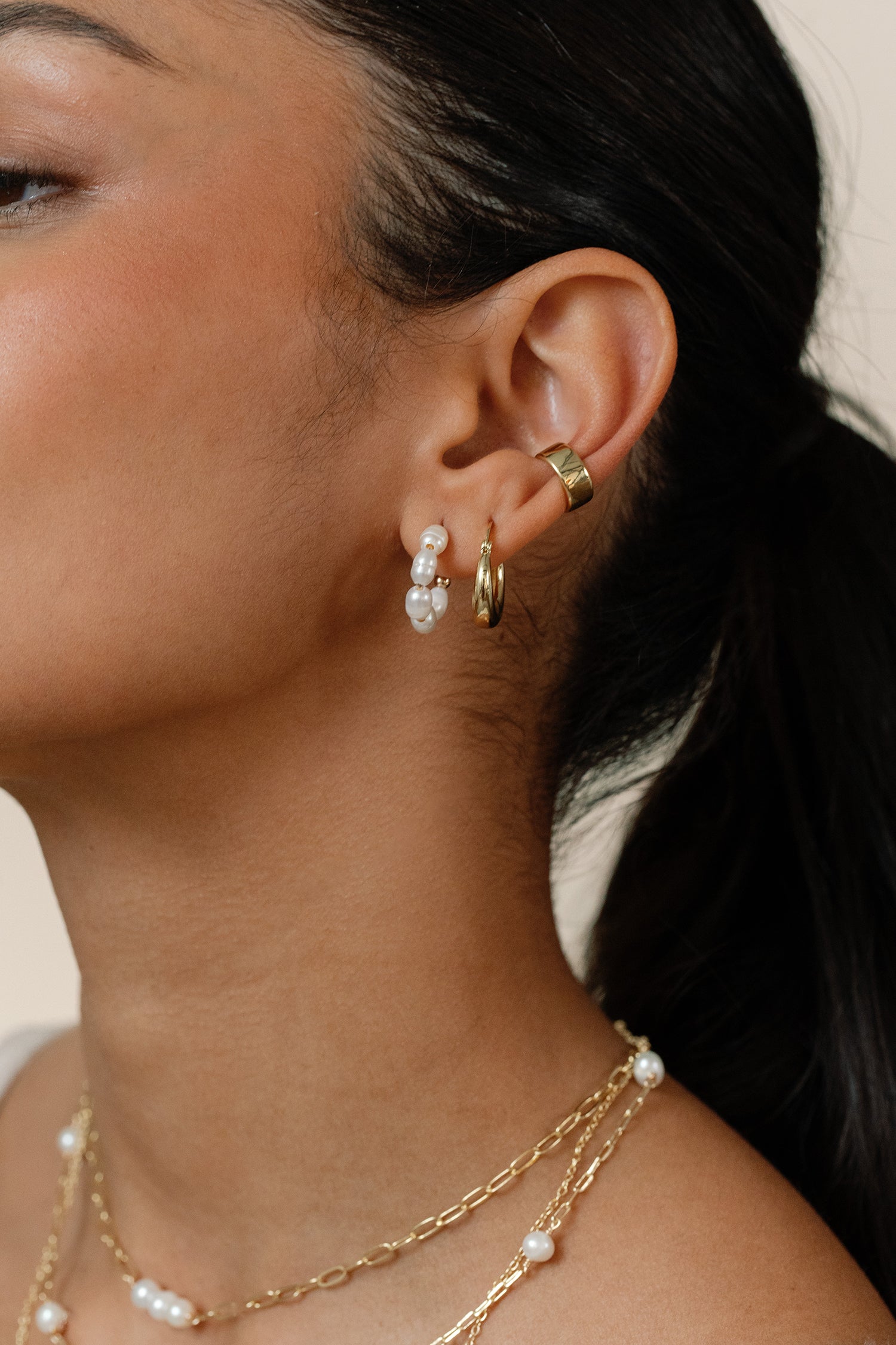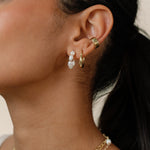 Elevate your earring collection with our Phoebe Pearl Earrings, featuring a small hoop of freshwater pearls that are easy to stack with a variety of earrings. Part of our Stackable Jewelry assortment.