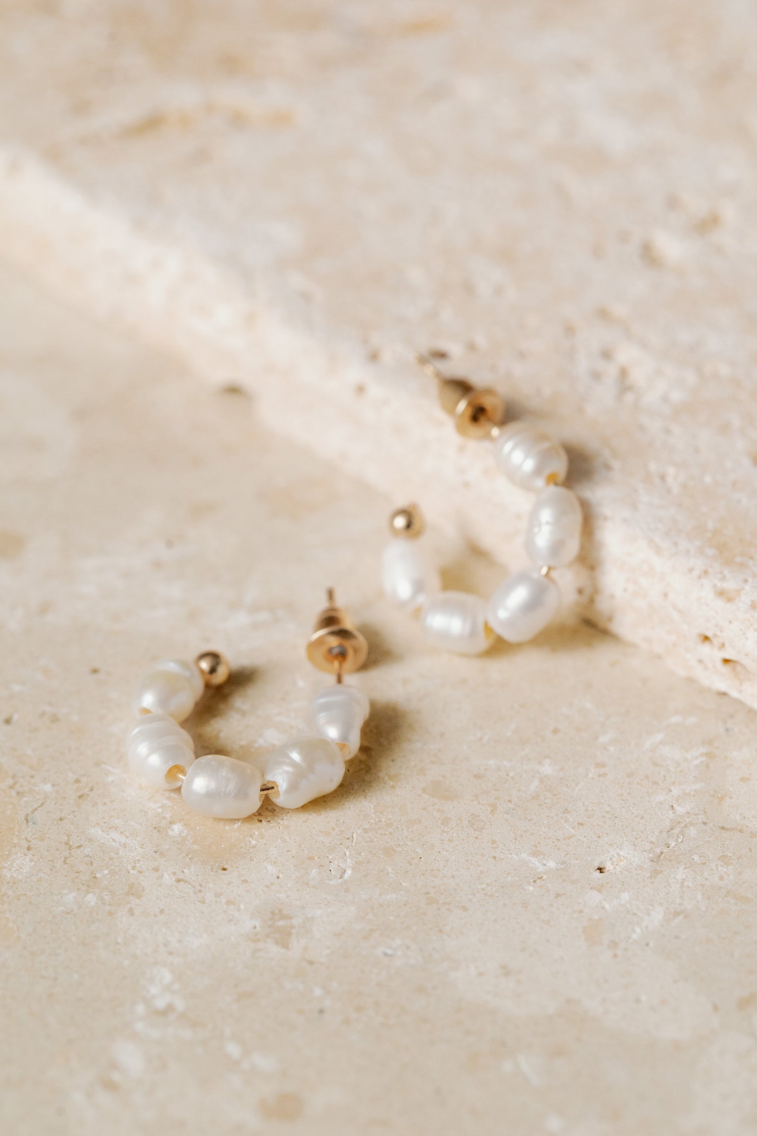 - Hoop earrings with freshwater pearls, posts with backs.