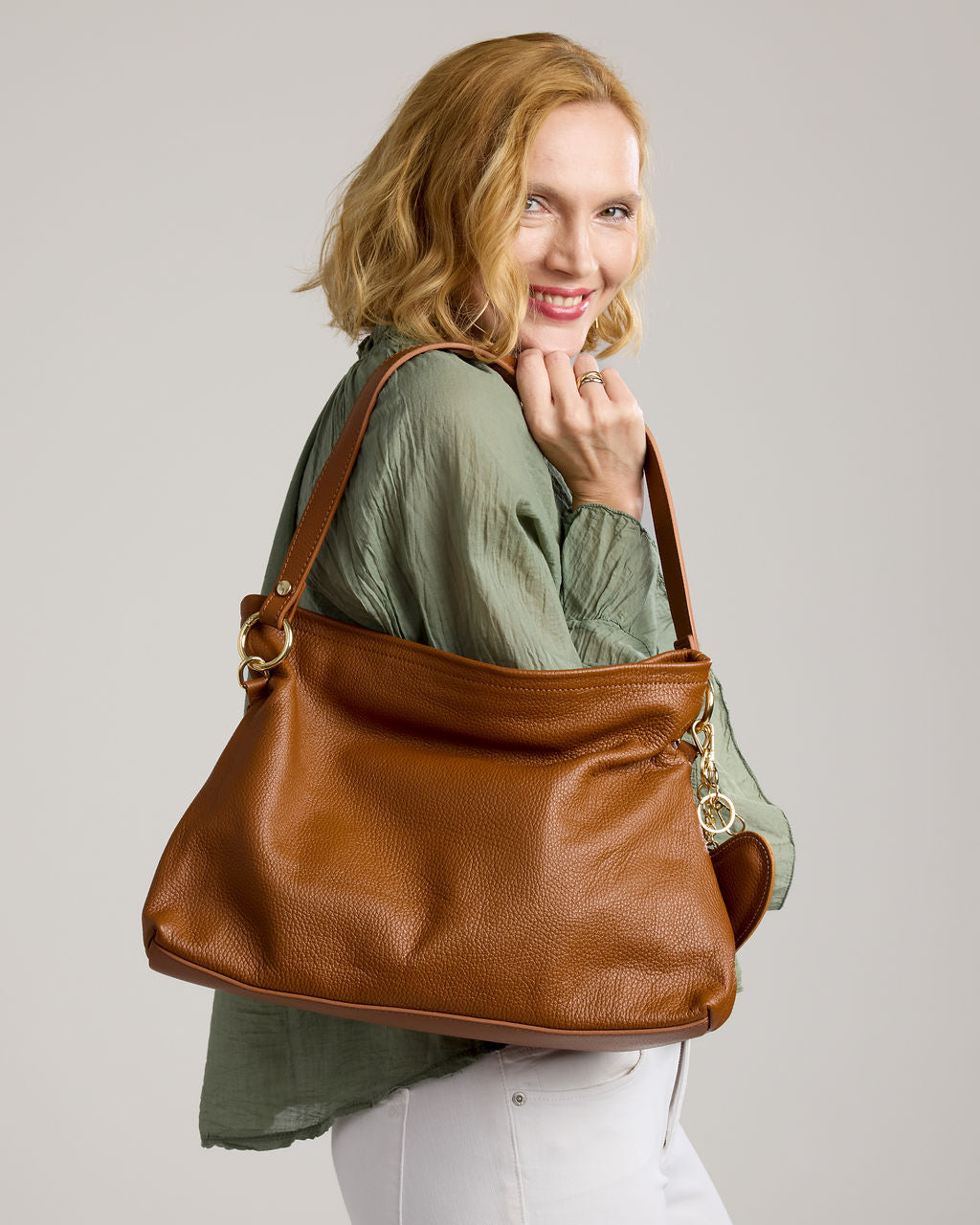 • Effortlessly chic with a relaxed silhouette, the Bella Slouch Bag is the ultimate blend of style and ease. Crafted from supple Italian leather, it softens beautifully over time while maintaining its elegant shape. The roomy interior holds all your essentials, making it perfect for everyday use, travel, or weekend getaways.