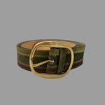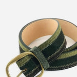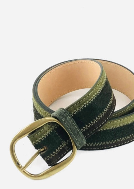 • A statement in subtle color and texture, the Sandra Belt features three rich shades of Italian suede blended into one beautifully crafted accessory. Soft to the touch with a supple structure, this belt adds dimension and warmth to any outfit.