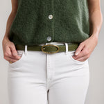 • Delicate in design, the Silvia belt adds a refined finish to any outfit. Featuring a slim profile and a chic oval-shaped buckle, it?s the perfect accent to define the waist without overwhelming your look. Made in Italy from smooth, high-quality leather, this belt pairs effortlessly with dresses, trousers, or layered over knitwear for a subtle touch of structure and style.