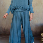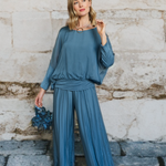 The Cassandra top drapes beautifully, offering a relaxed yet refined silhouette, while the coordinating Madelyn pants provide a tailored yet comfortable fit. Thoughtfully designed in a monochromatic palette, this set is versatile enough to dress up with heels and jewelry or keep casual with flats and a tote.