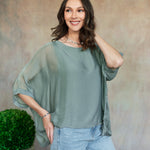 Our Martina Silk Top is an ode to grace. This stunning piece features delicate silk layers that cascade beautifully, complemented by an eye-catching asymmetrical hemline. Perfectly paired with jeans or pants, it offers a breezy, feminine look that's both effortless and elegant. For a truly brilliant head-to-toe ensemble, match it with our Madelyn Silk Pants and step into a world of timeless allure. Part of our mix-and-match Italian Silk assortment.