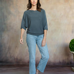 Subtle elegance meets everyday ease in the Esma Knit Top. Featuring a graceful boat neckline, flowing dolman 3/4 sleeves, and a drapey fit, this top offers comfort with a hint of sophistication. Style it with our Madelyn Silk Pants for a timeless ensemble, the Lenore Linen Pants for casual refinement, or your favorite jeans for laid-back spring days.