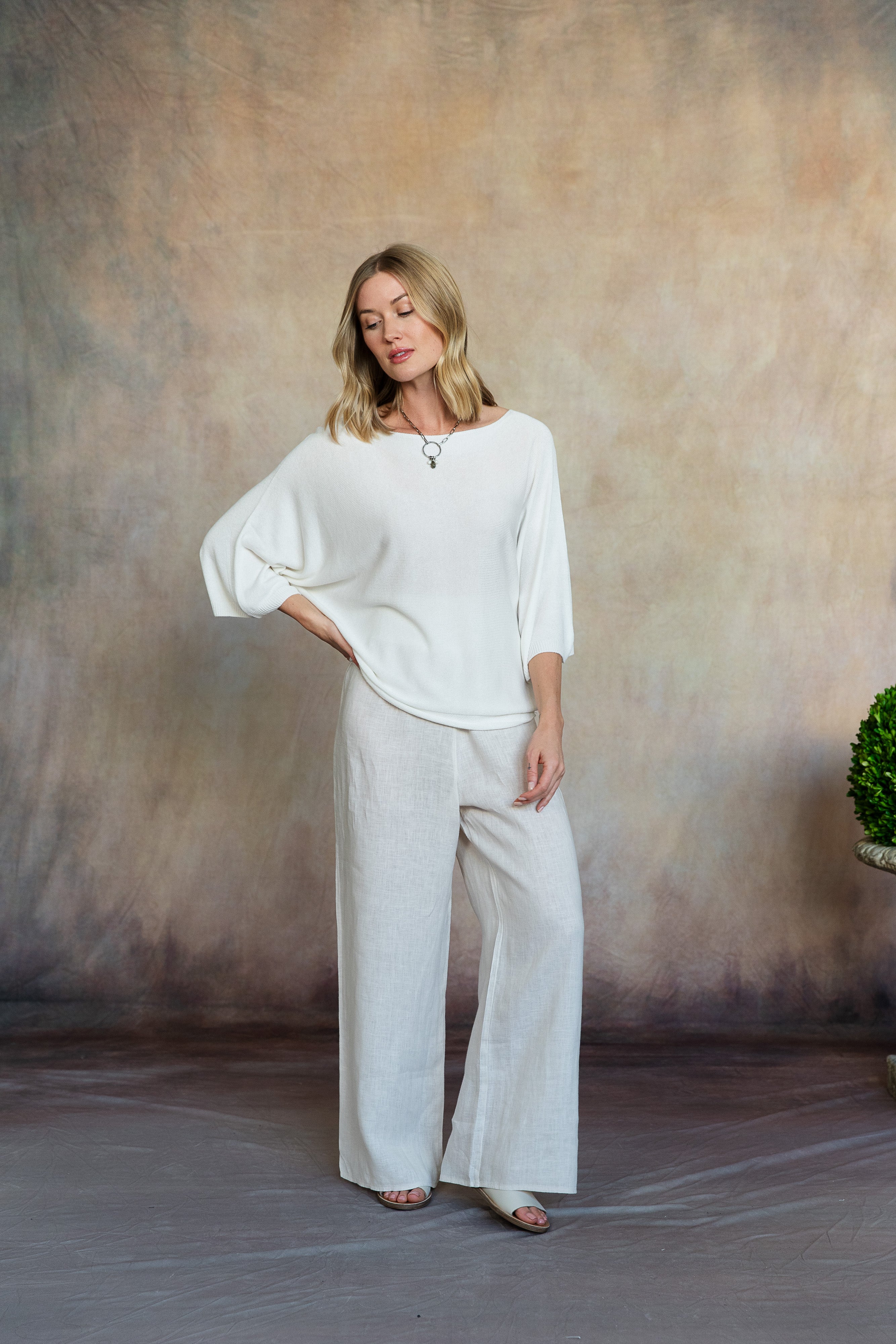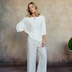 Subtle elegance meets everyday ease in the Esma Knit Top. Featuring a graceful boat neckline, flowing dolman 3/4 sleeves, and a drapey fit, this top offers comfort with a hint of sophistication. Style it with our Madelyn Silk Pants for a timeless ensemble, the Lenore Linen Pants for casual refinement, or your favorite jeans for laid-back spring days.
