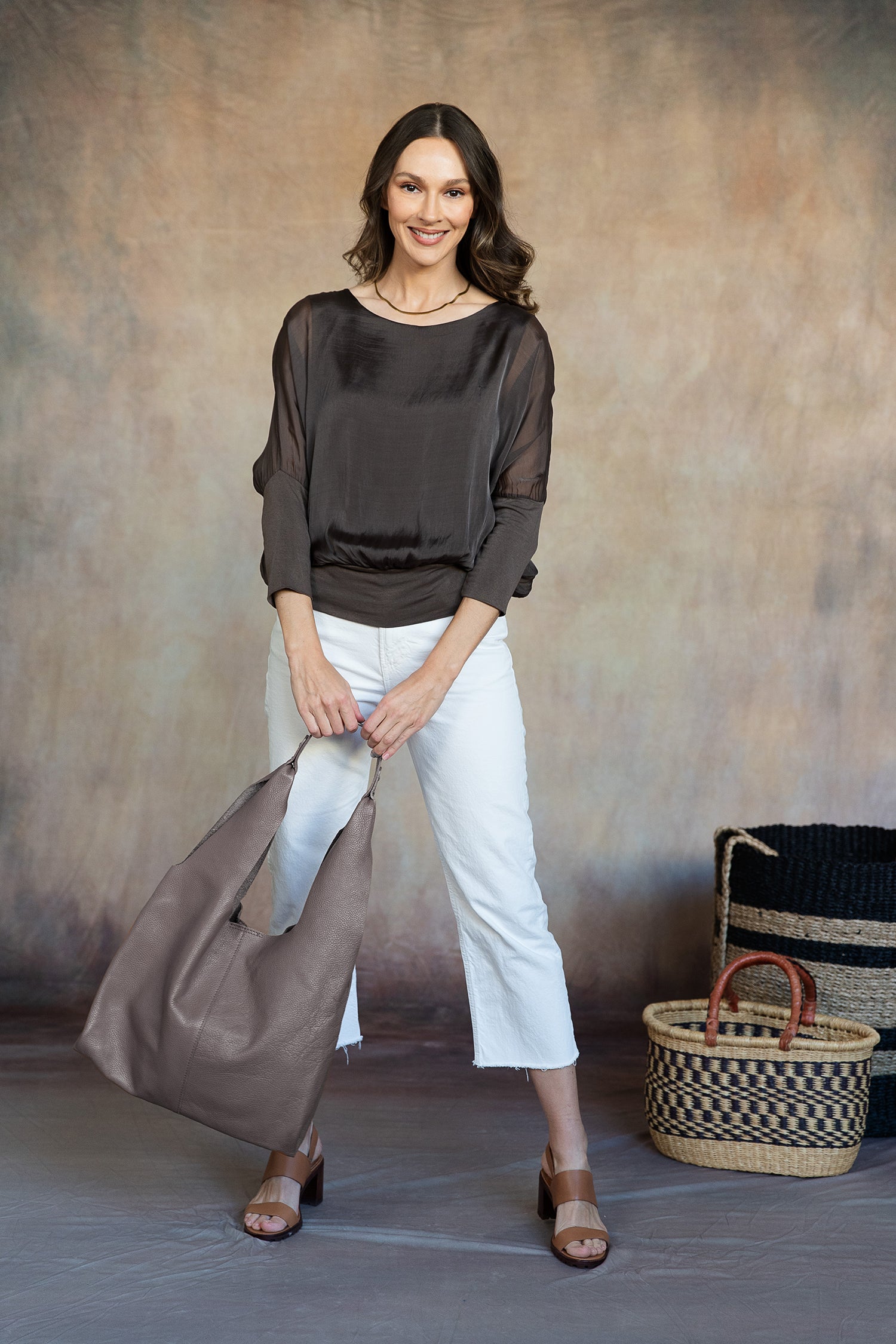 Wanderlust comes to life in the Gabriella Hobo Tote Bag, a perfect blend of boho chic and classic sophistication. Inspired by our passion for travel and crafted from genuine Italian pebbled leather, it captures the essence of carefree exploration and timeless style.