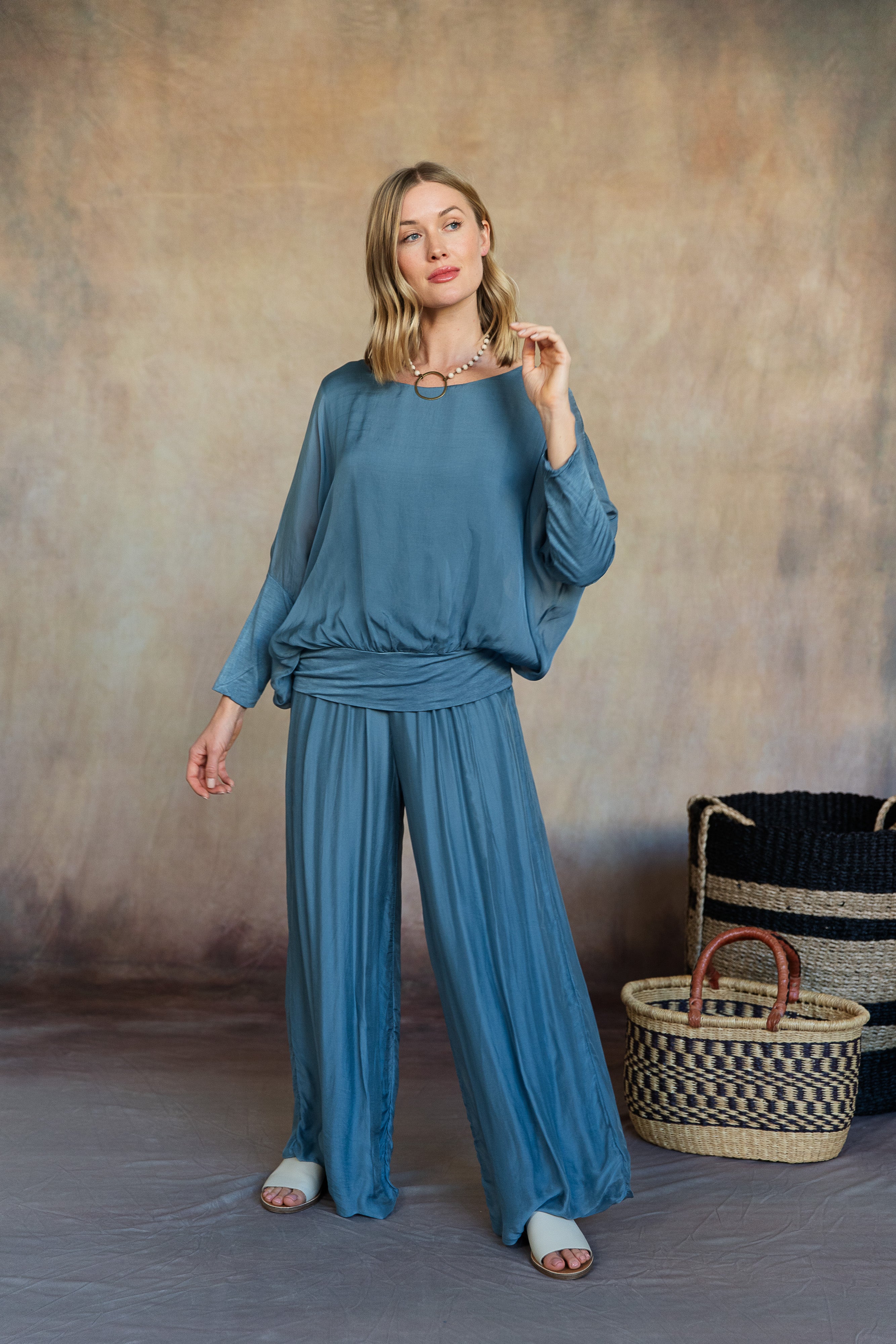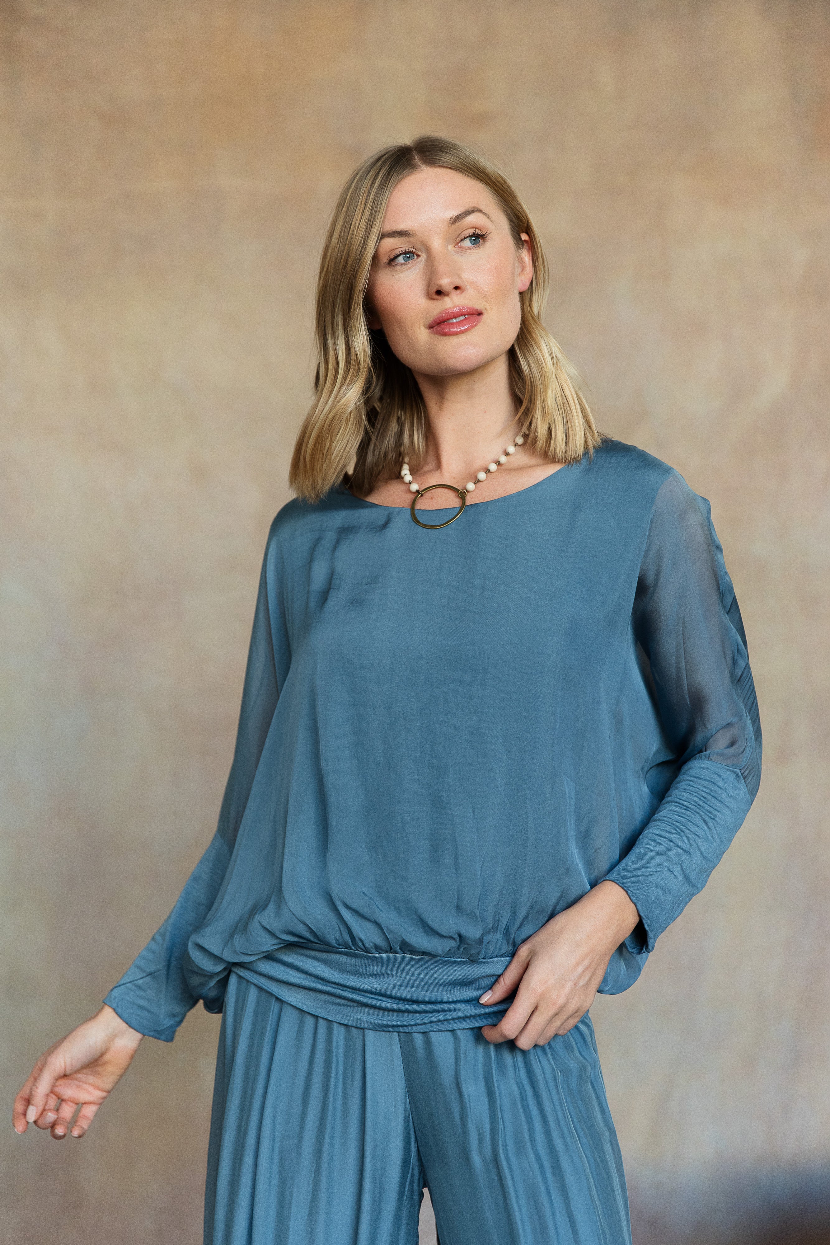 Cassandra Silk Top (Aegean Blue)