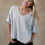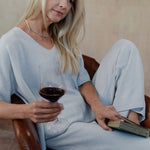 Our Coletta Short Sleeve Sweater is crafted from our signature buttery-soft knit fabric, a go-to piece for moments of relaxed sophistication. It features a v-neck, short sleeves, and flattering silhouette you'll fall for again and again. Perfectly paired with our Cleo Sweater Pants, Coletta creates a seamless blend of style and coziness. Part of our Mix-and-Match Knitwear capsule.