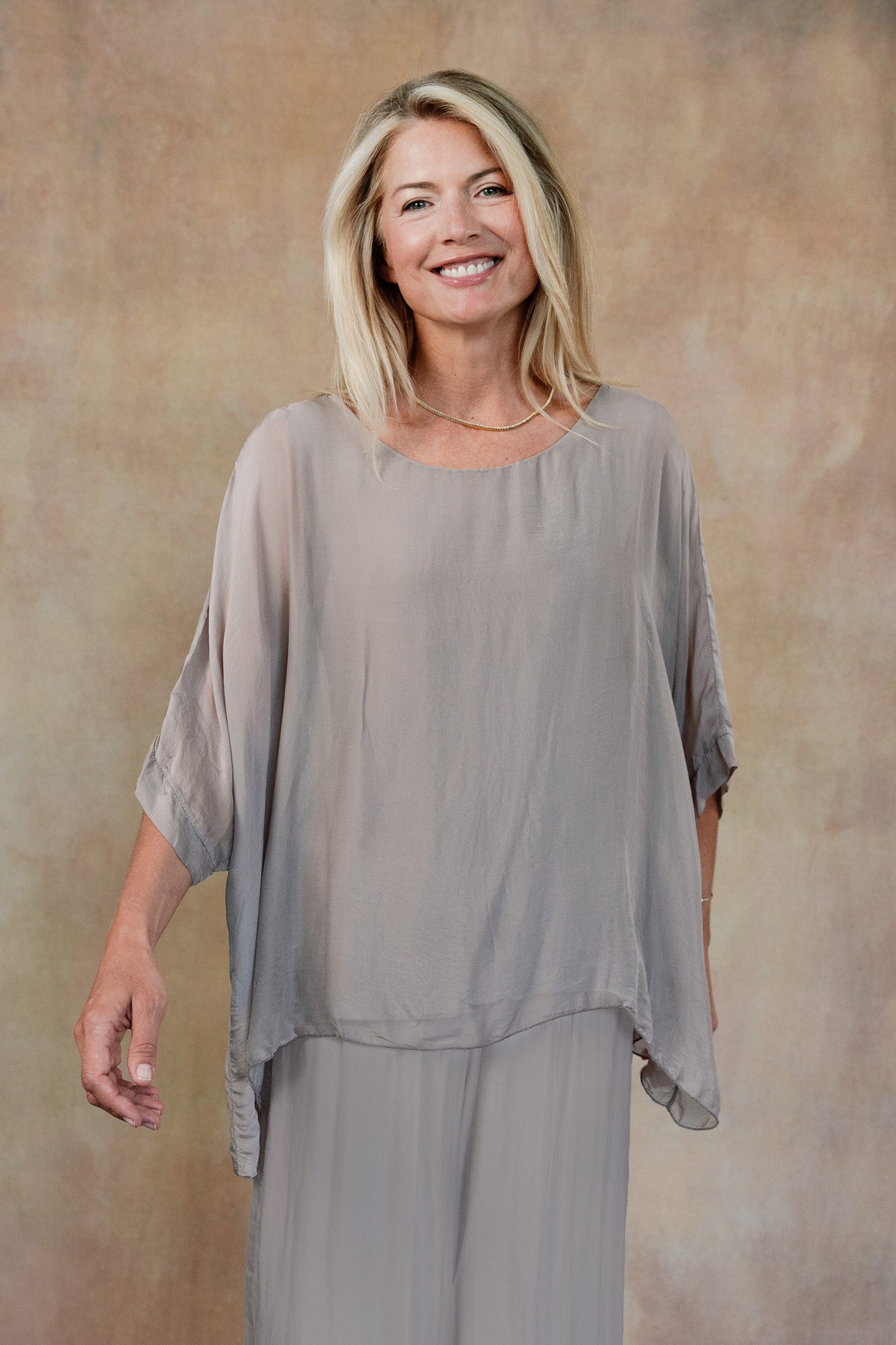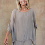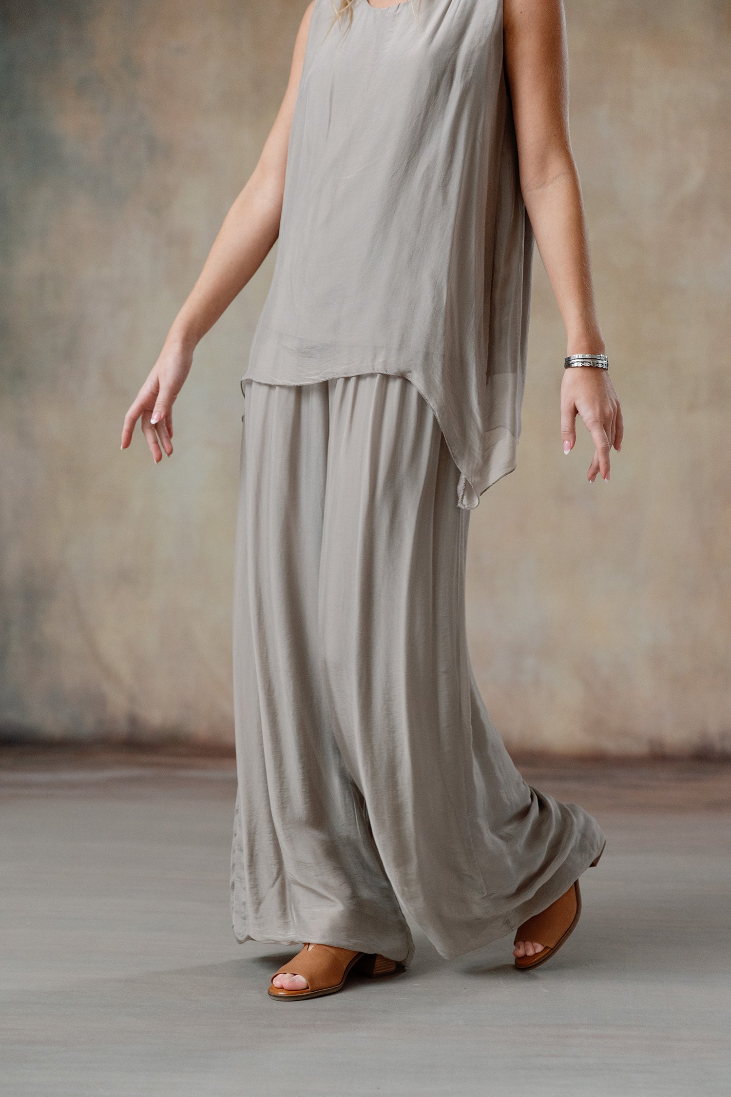 Elevate your customers' wardrobe with the Martina silk top and Madelyn silk pant set, a perfectly curated ensemble designed for both comfort and sophistication. Crafted in Italy from luxurious, breathable fabrics, this set embodies effortless elegance with a modern twist.